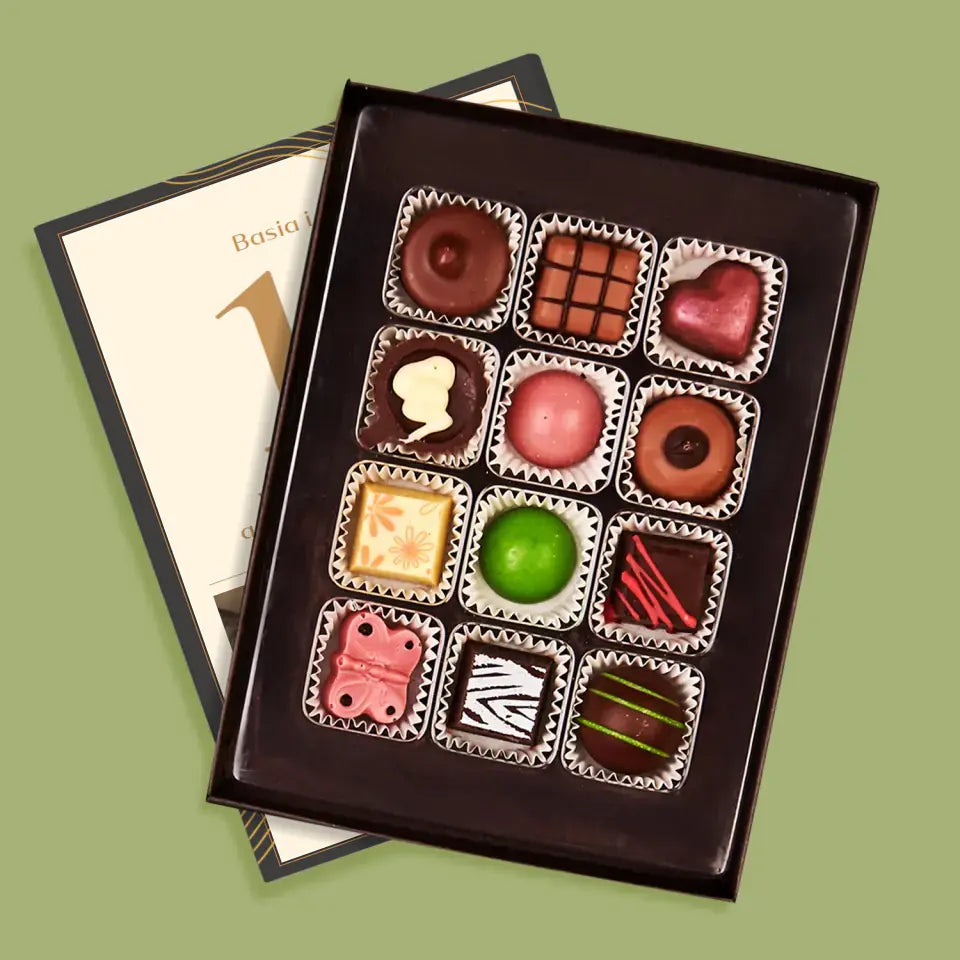 Pyszne praliny z belgijskiej czekolady w eleganckim pudełku z wybraną przez Ciebie personalizacją.
