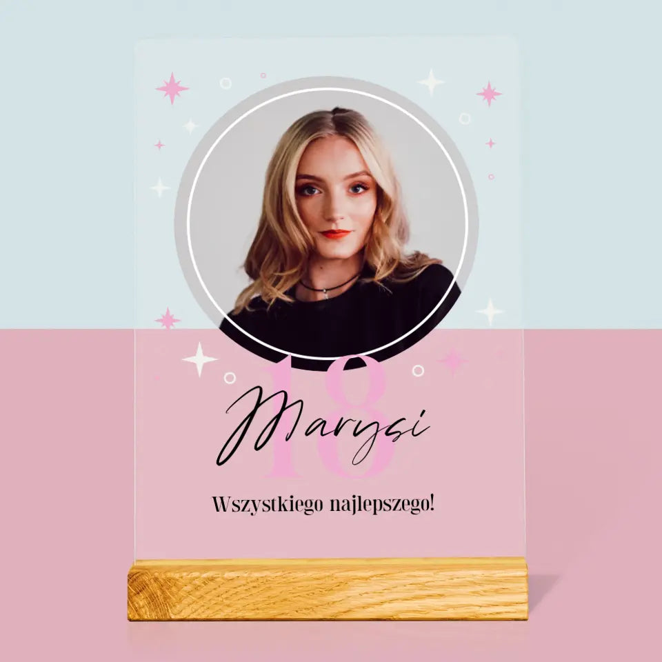 Zdjęcie i Podpis: 18 Gwiazdki - Wydruk na szkle akrylowym