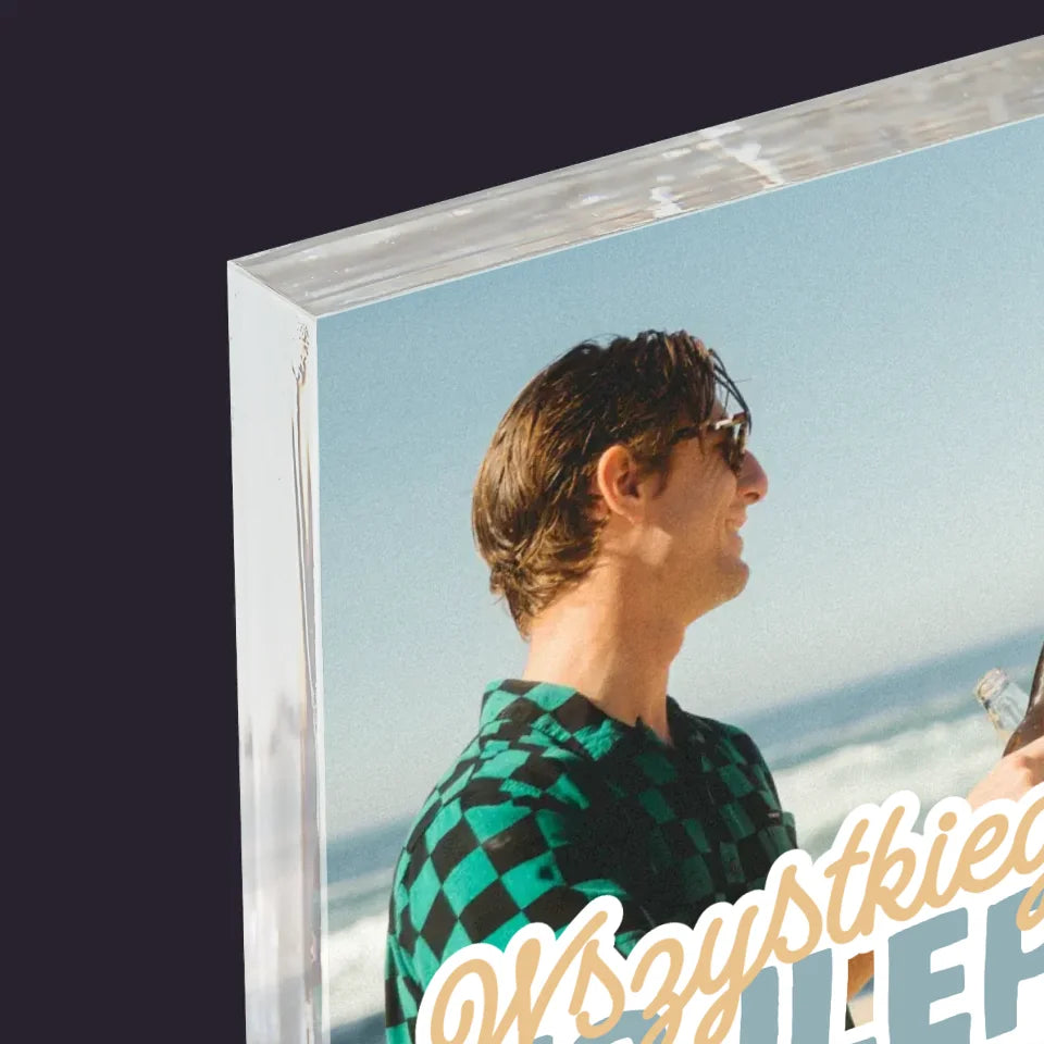 Wydruk na bezbarwnym bloku akrylowym (pleksiglas) o grubości 2 cm z wybranym przez Ciebie personalizowanym wzorem.