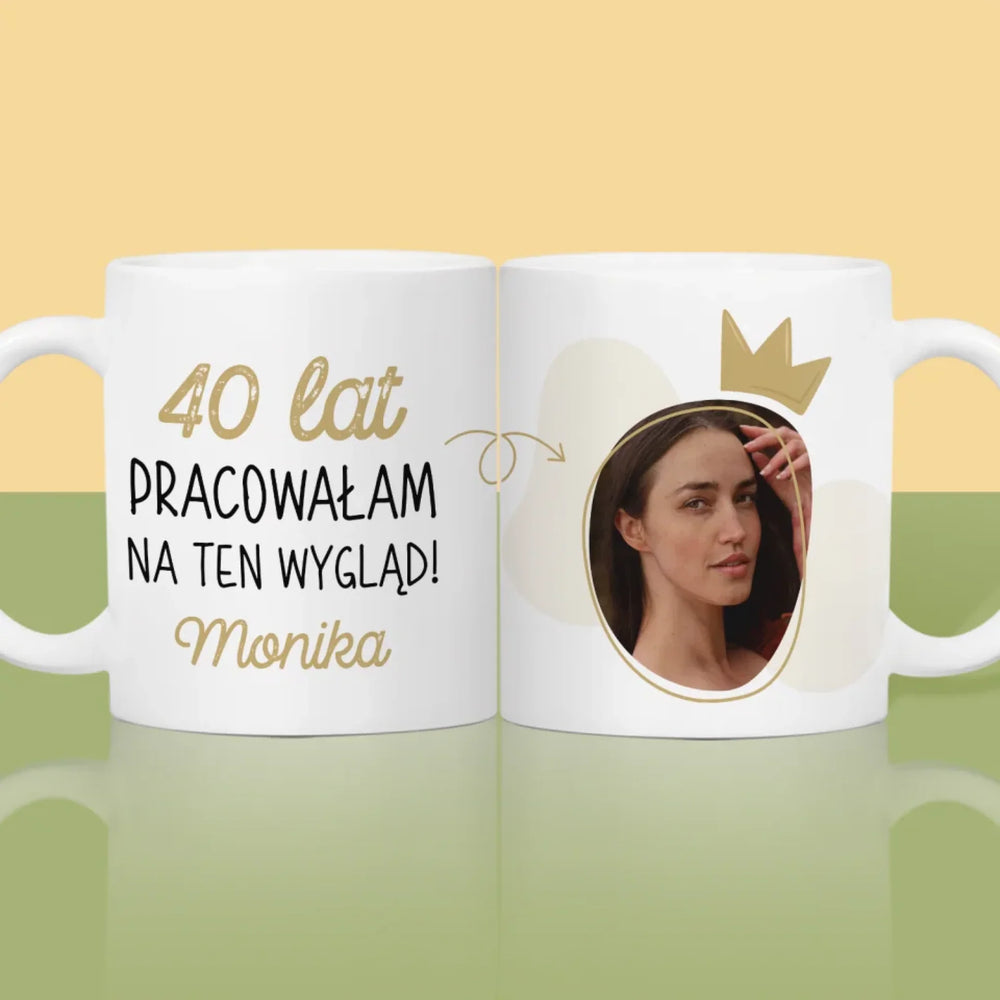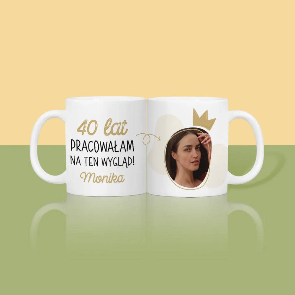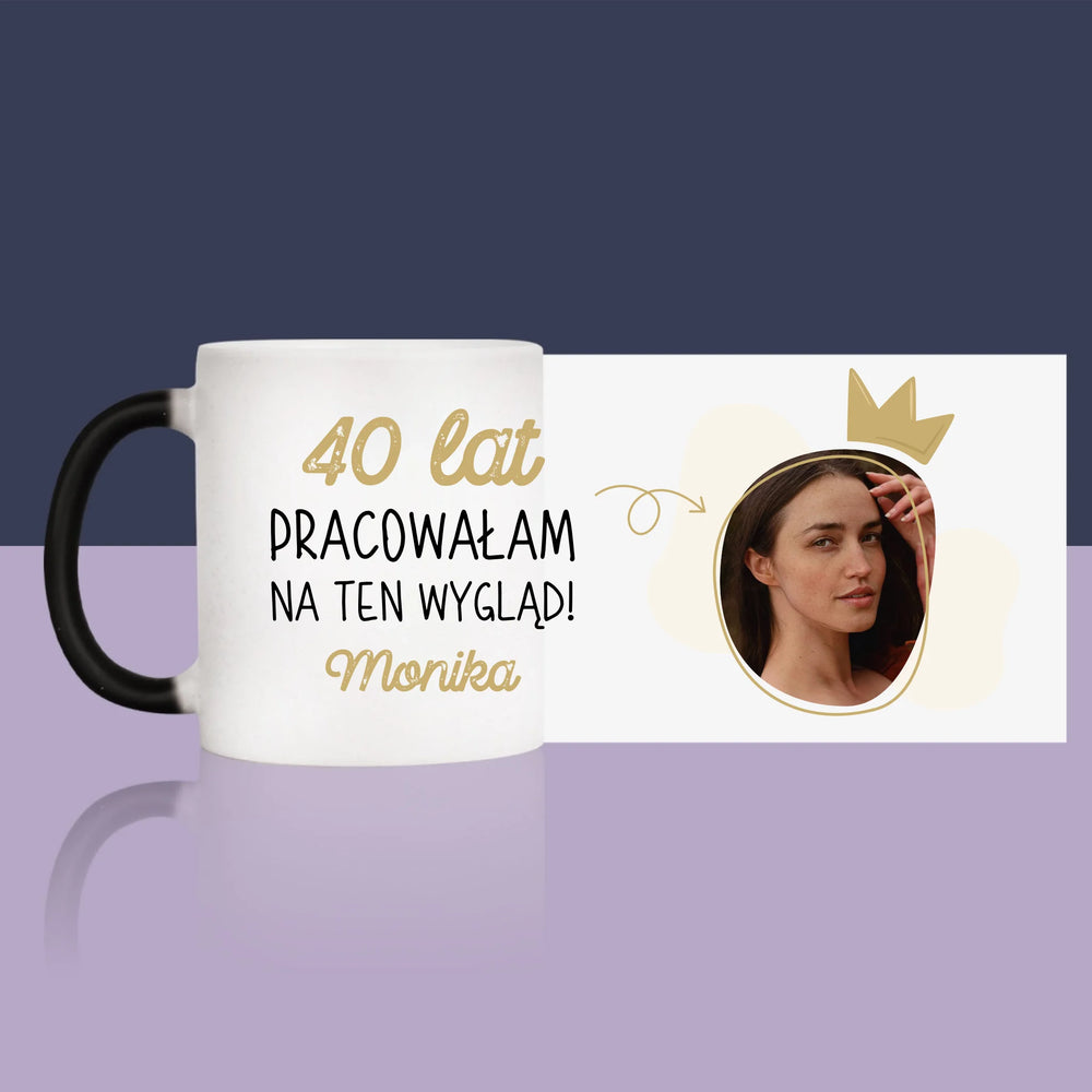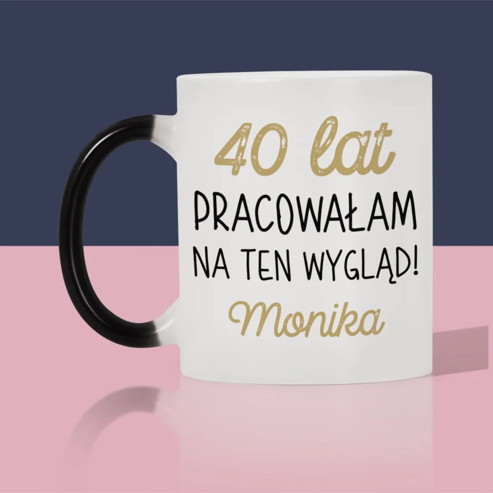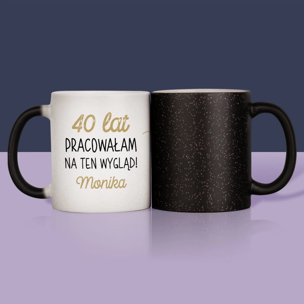 Zdjęcie I Podpis: 40 Lat Pracowałam Na Ten Wygląd - Magiczny kubek z brokatem