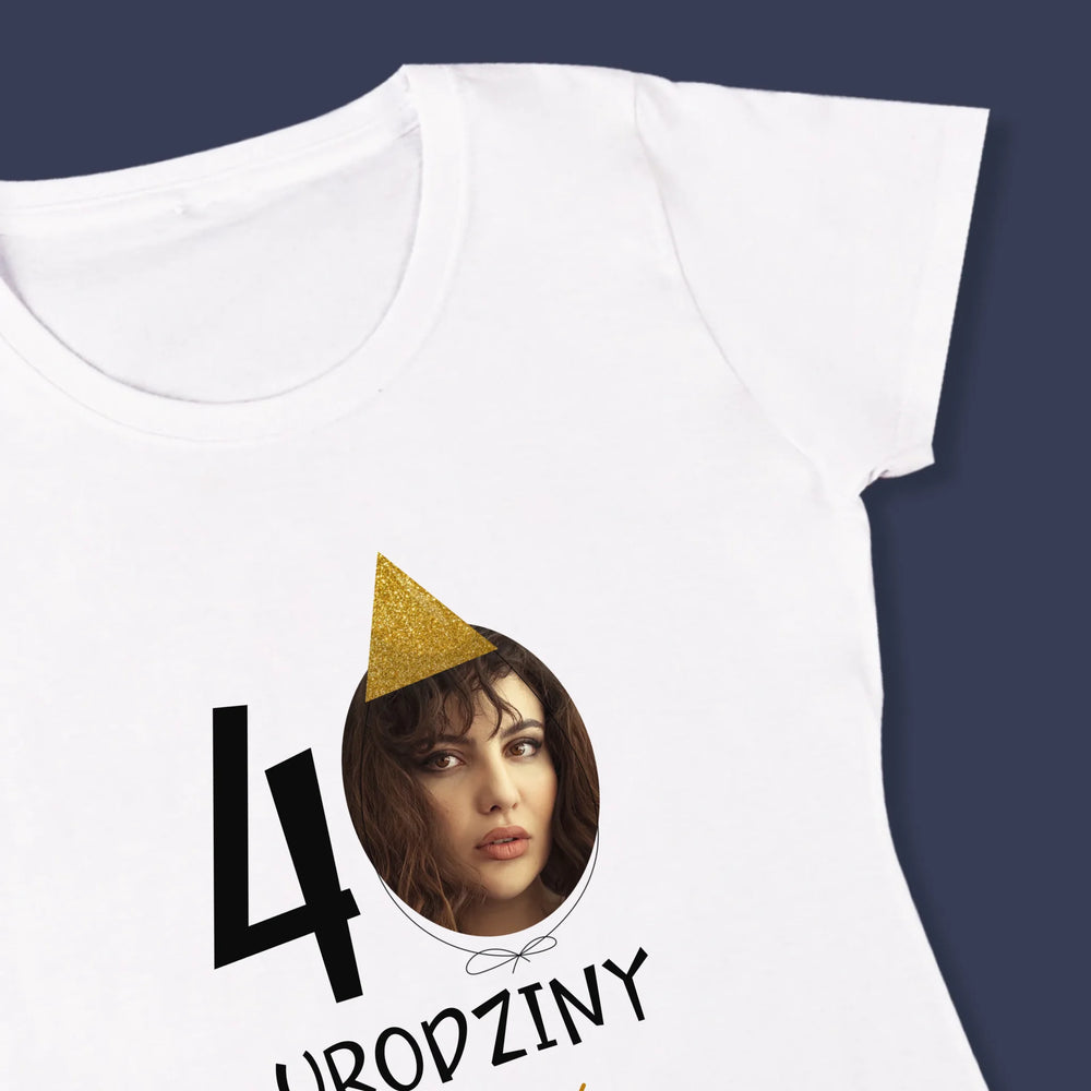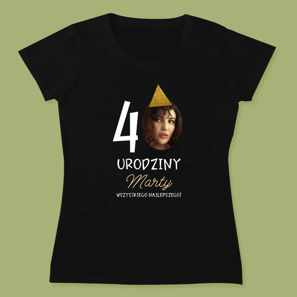 Zdjęcie I Podpis: 40 Urodziny Czapeczka - Personalizowana Koszulka Damska