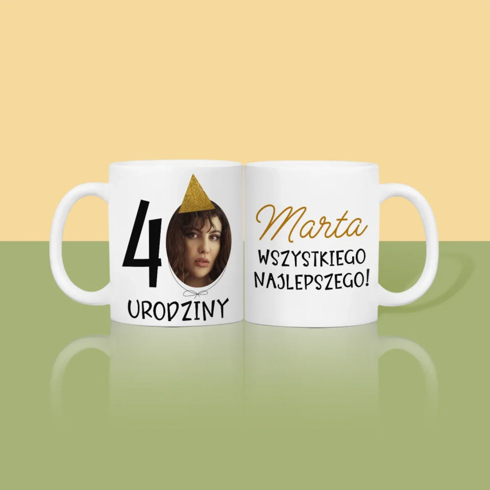 Zdjęcie I Podpis: 40 Urodziny Czapeczka - Kubek z nadrukiem