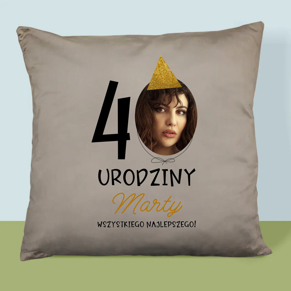 Zdjęcie I Podpis: 40 Urodziny Czapeczka - Poduszka z Nadrukiem