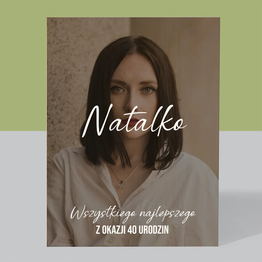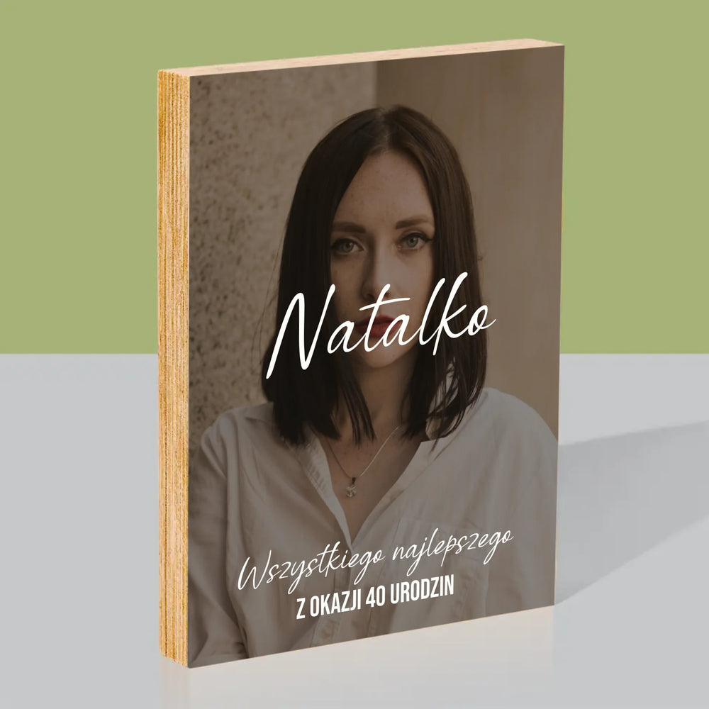 Zdjęcie I Podpis: 40 Urodziny Wszystkiego Najlepszego - Wydruk na drewnie - Pion