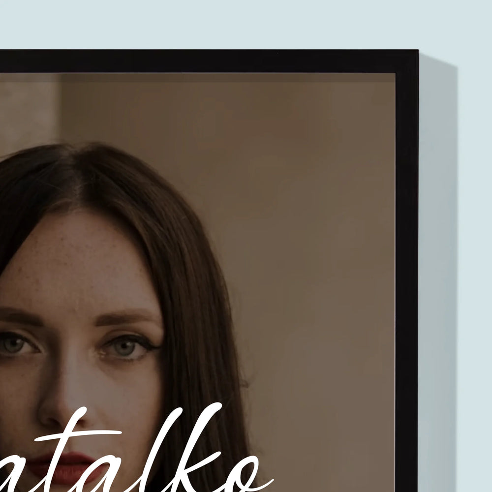 Wydruk wykonujemy na wysokiej jakości papierze foto, który zostaje oprawiony w ramkę w wybranym kolorze: złotym, białym lub czarnym.