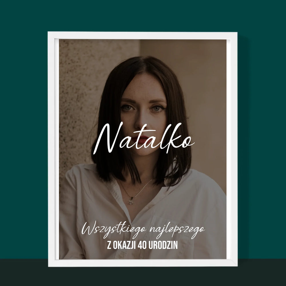 Zdjęcie I Podpis: 40 Urodziny Wszystkiego Najlepszego - Wydruk obramowany - Pion