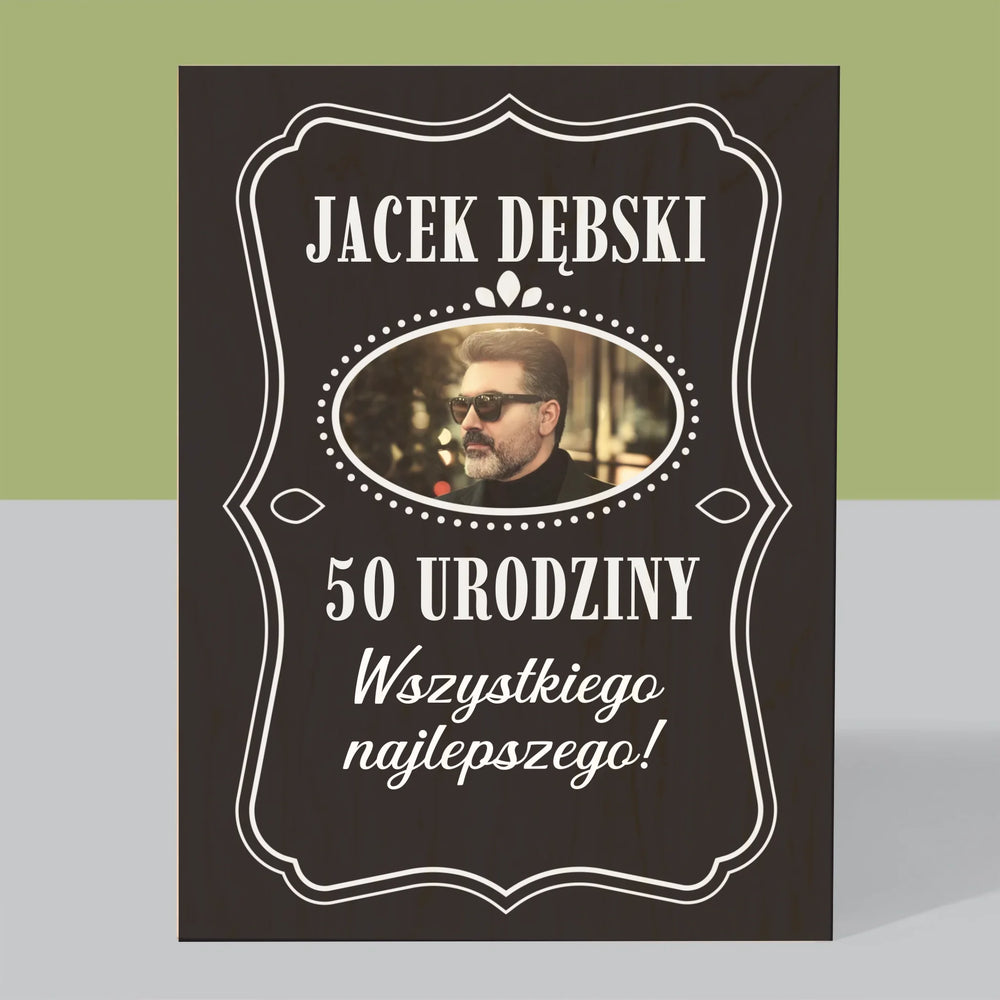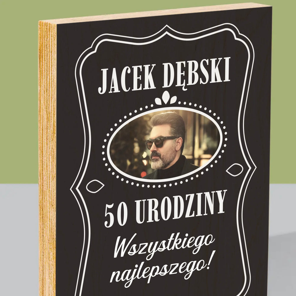 Zdjęcie I Podpis: 50 Urodziny Wszystkiego Najlepszego - Wydruk na drewnie - Pion