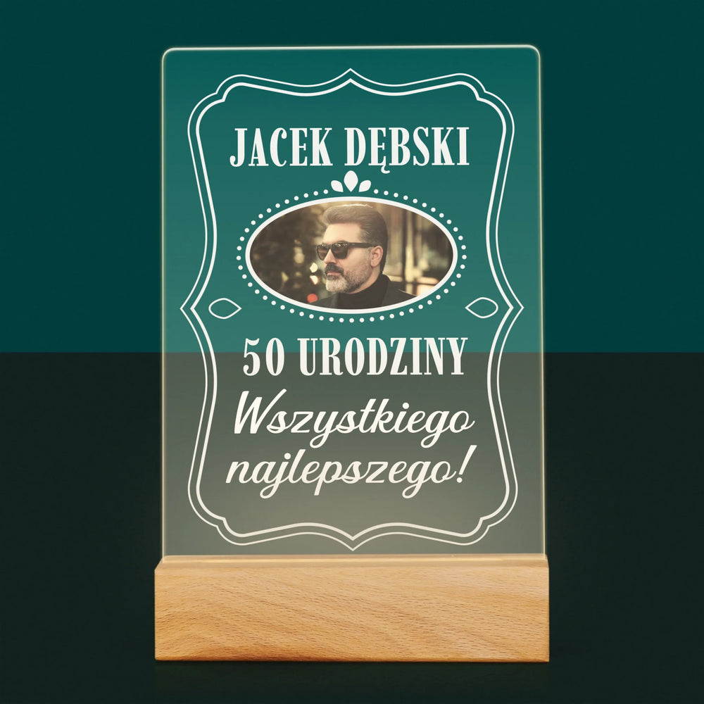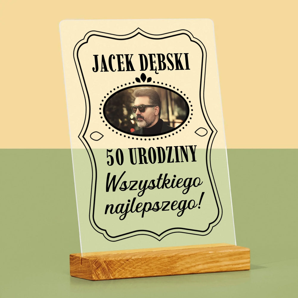 Zdjęcie I Podpis: 50 Urodziny Wszystkiego Najlepszego - Wydruk na szkle akrylowym