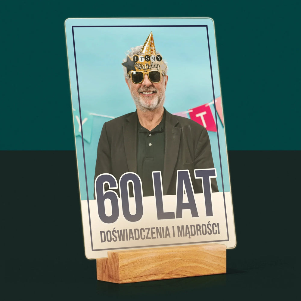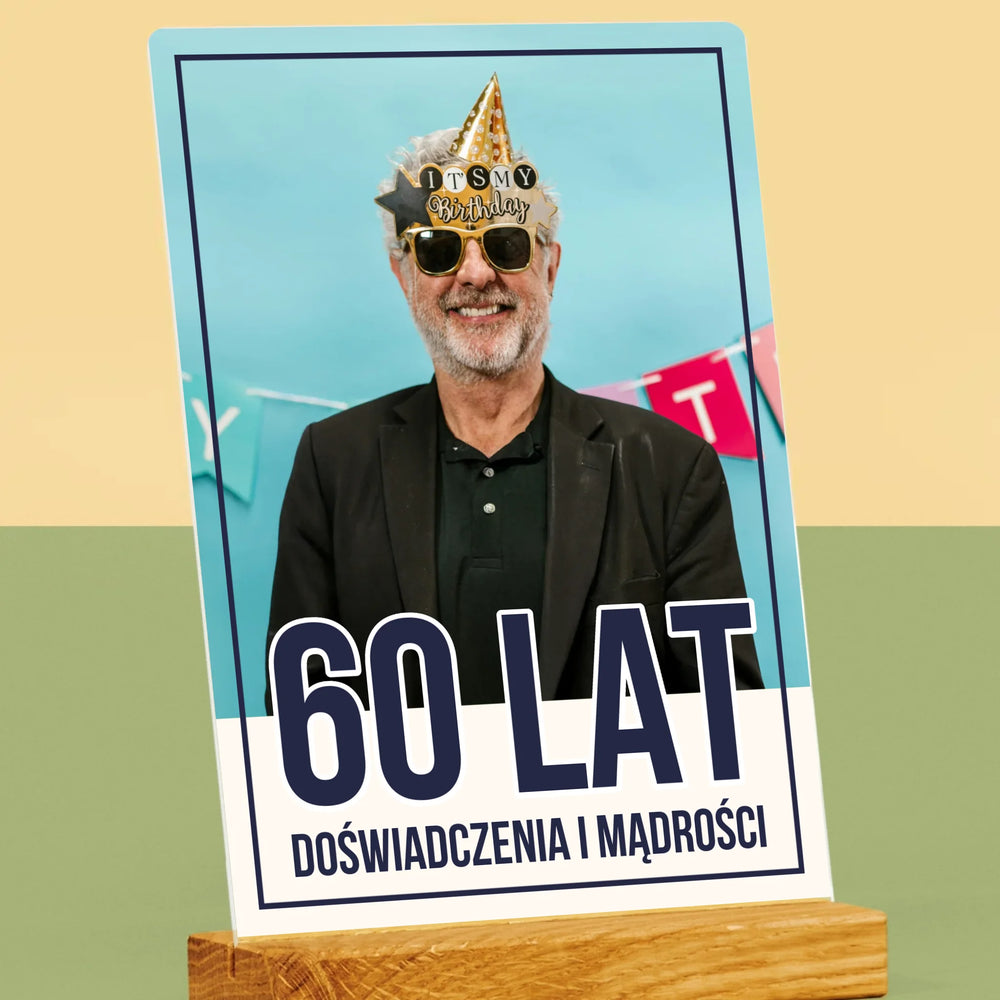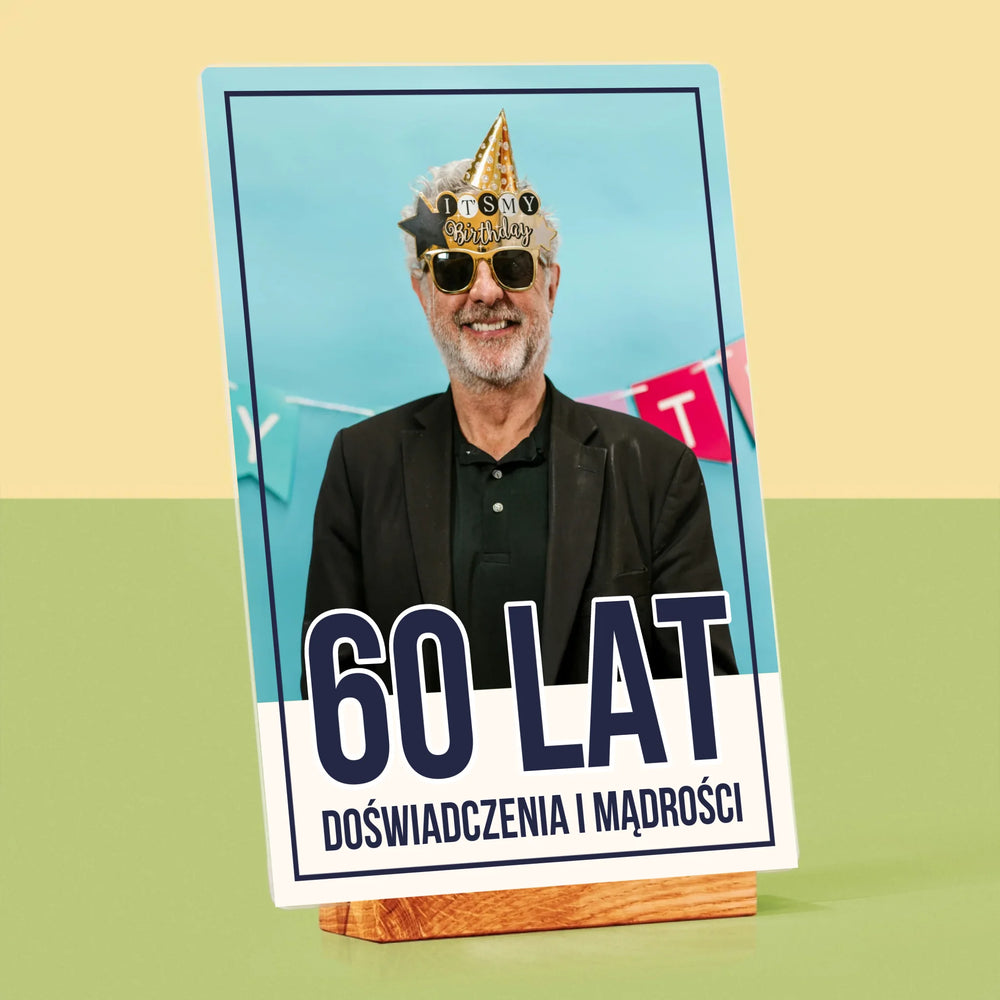 Zdjęcie i Podpis: 60 Lat Doświadczenia i Mądrości - Wydruk na szkle akrylowym