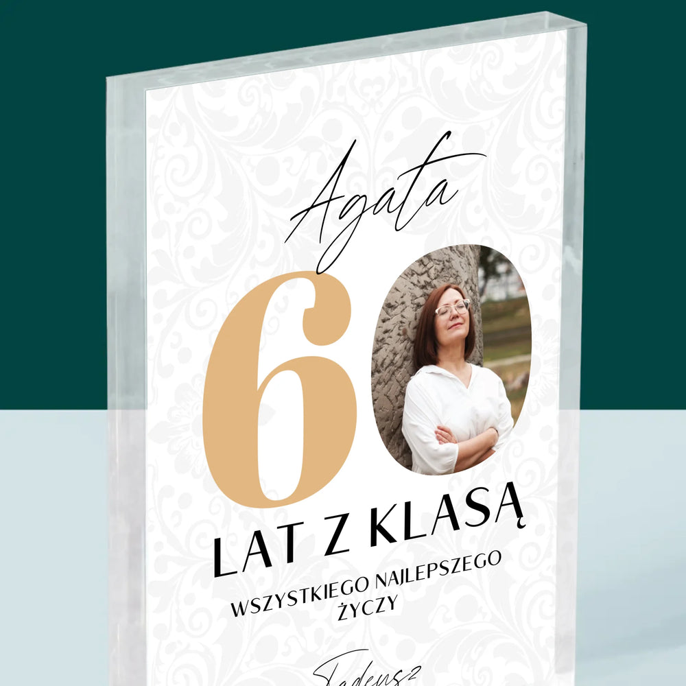 Zdjęcie i Podpis: 60 Lat z Klasą - Blok Akrylowy z Nadrukiem