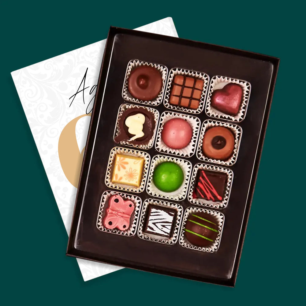 Pyszne praliny z belgijskiej czekolady w eleganckim pudełku z wybraną przez Ciebie personalizacją.
