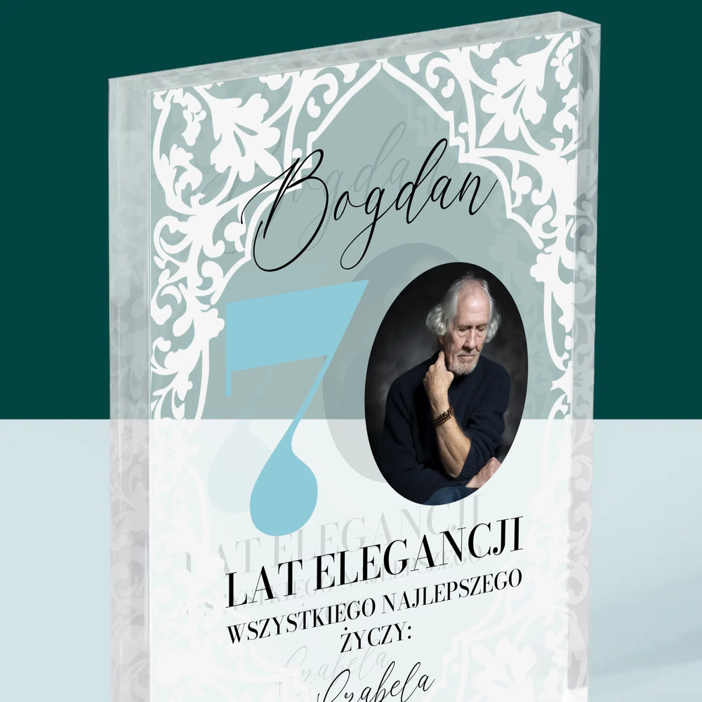 Zdjęcie I Podpis: 70 Lat Elegancji - Blok Akrylowy z Nadrukiem