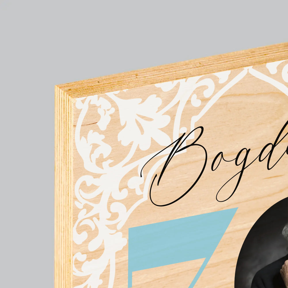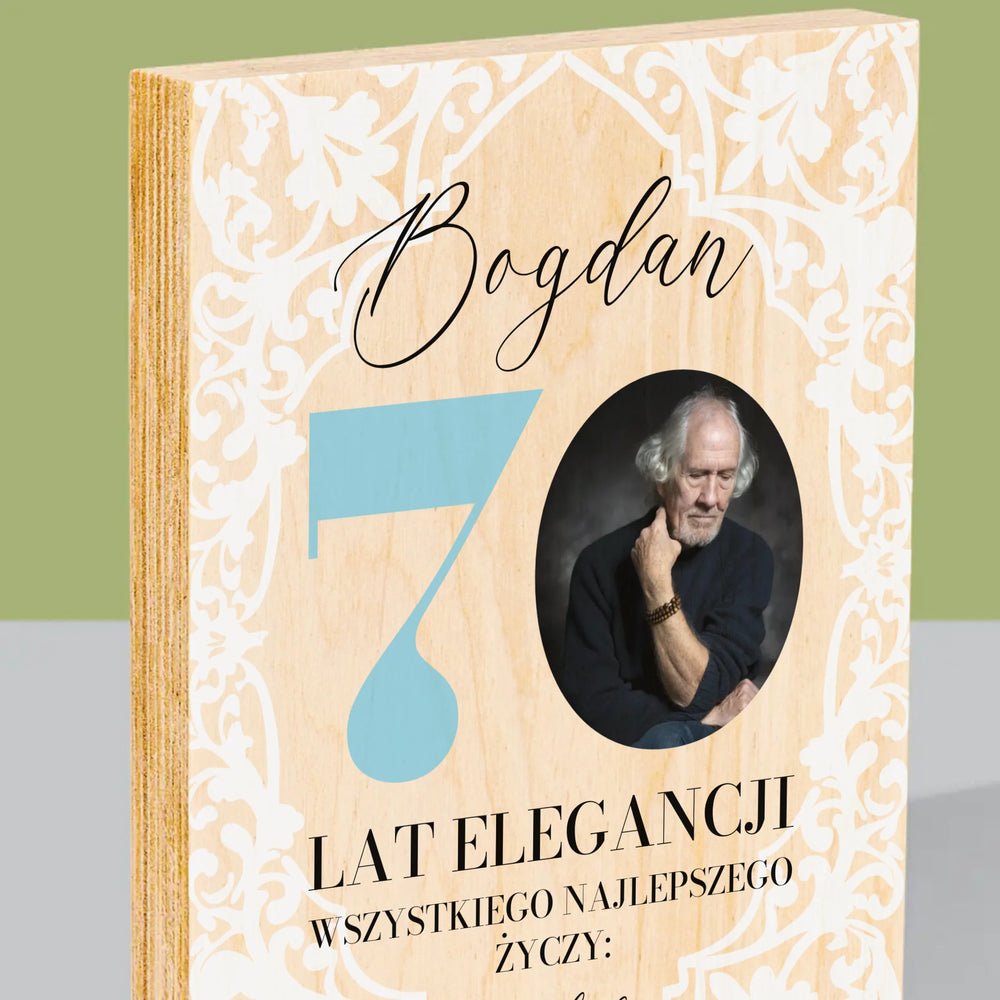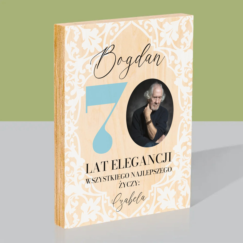 Zdjęcie I Podpis: 70 Lat Elegancji - Wydruk na drewnie - Pion