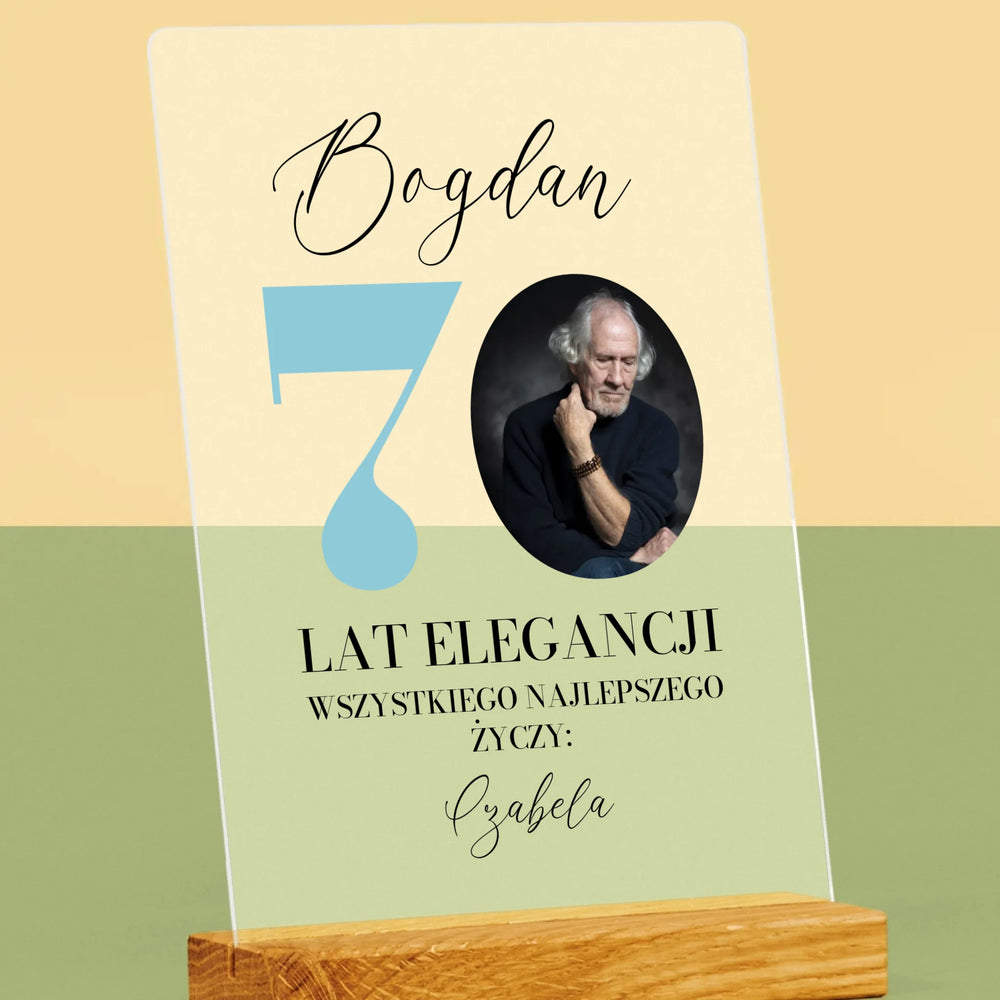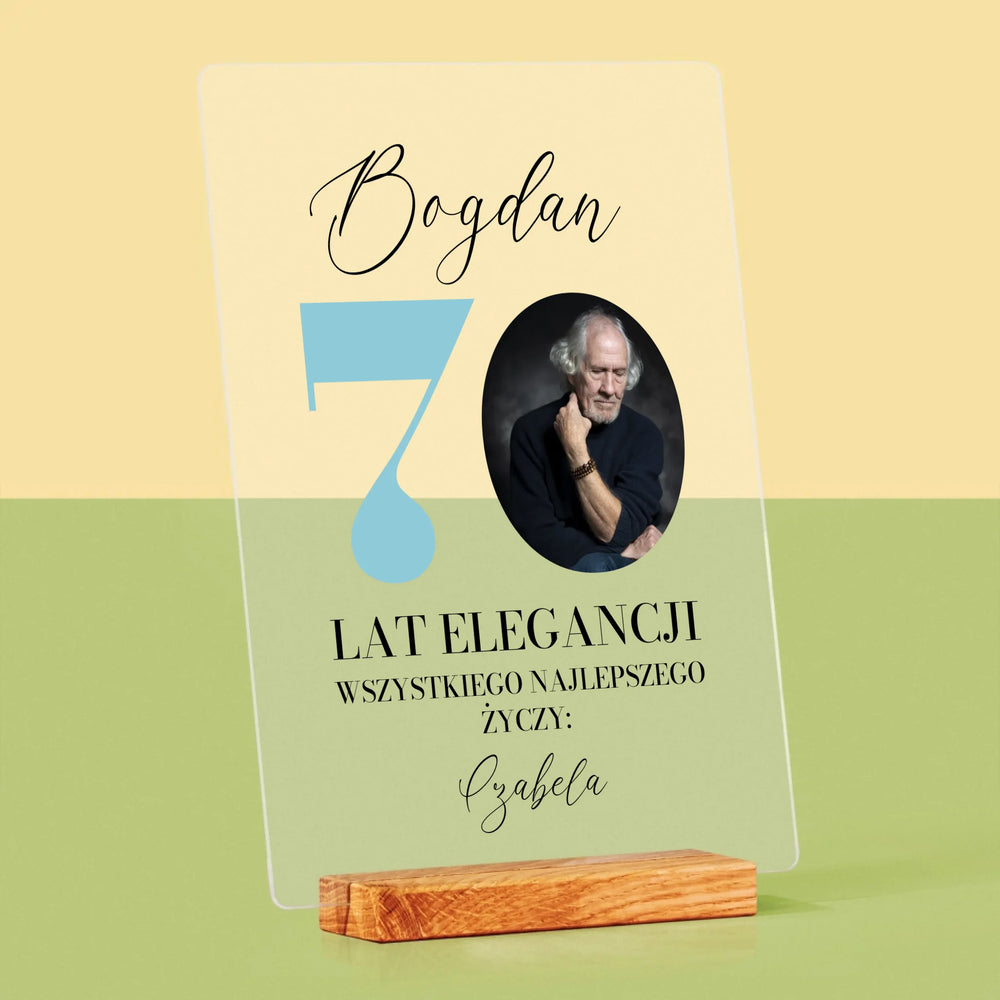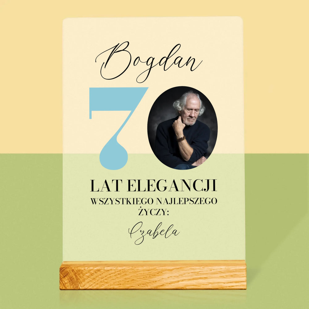 Zdjęcie I Podpis: 70 Lat Elegancji - Wydruk na szkle akrylowym