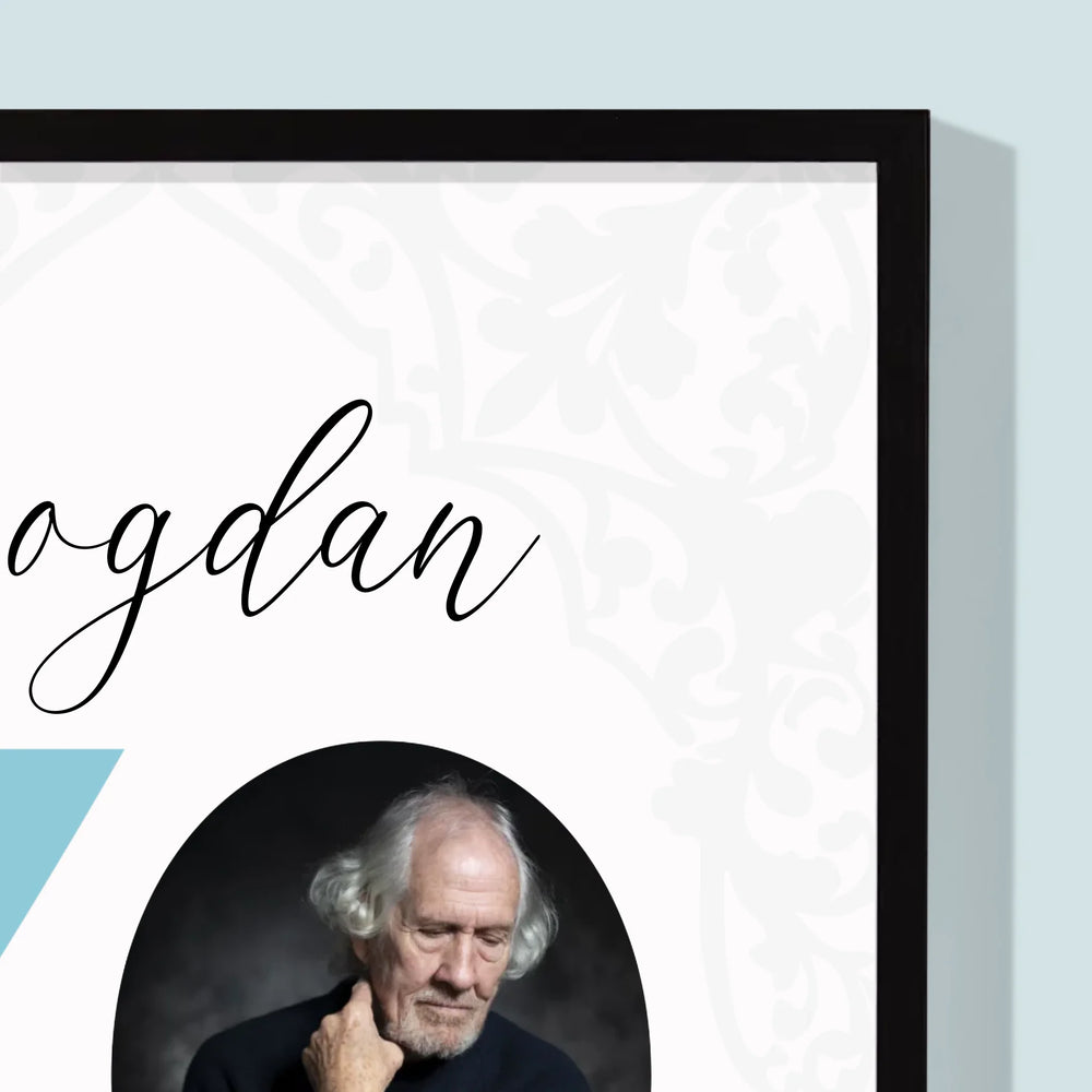 Wydruk wykonujemy na wysokiej jakości papierze foto, który zostaje oprawiony w ramkę w wybranym kolorze: złotym, białym lub czarnym.