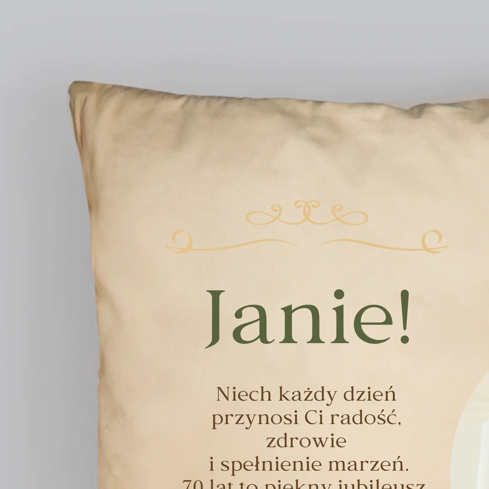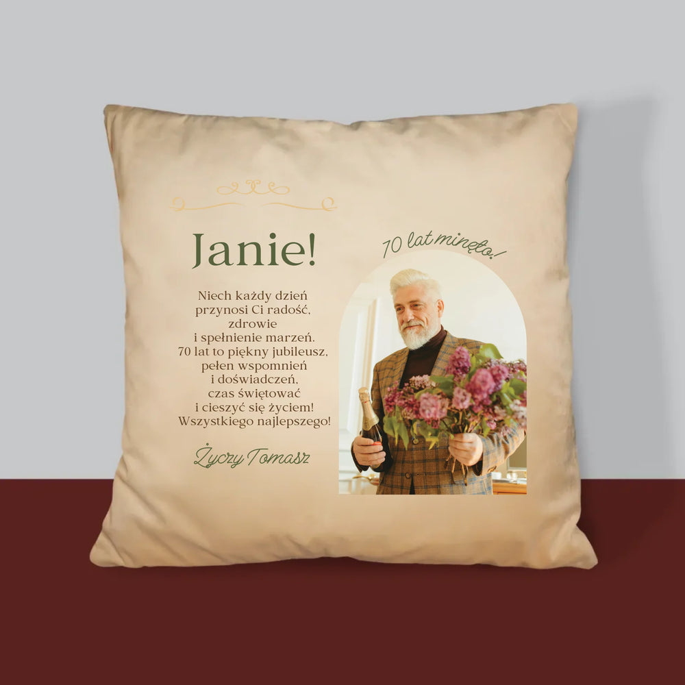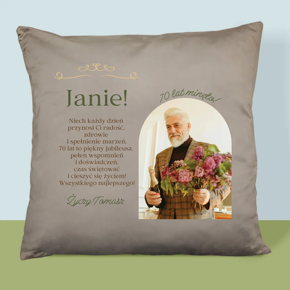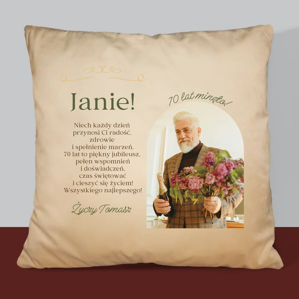 Zdjęcie I Podpis: 70 Lat Minęło - Poduszka z Nadrukiem