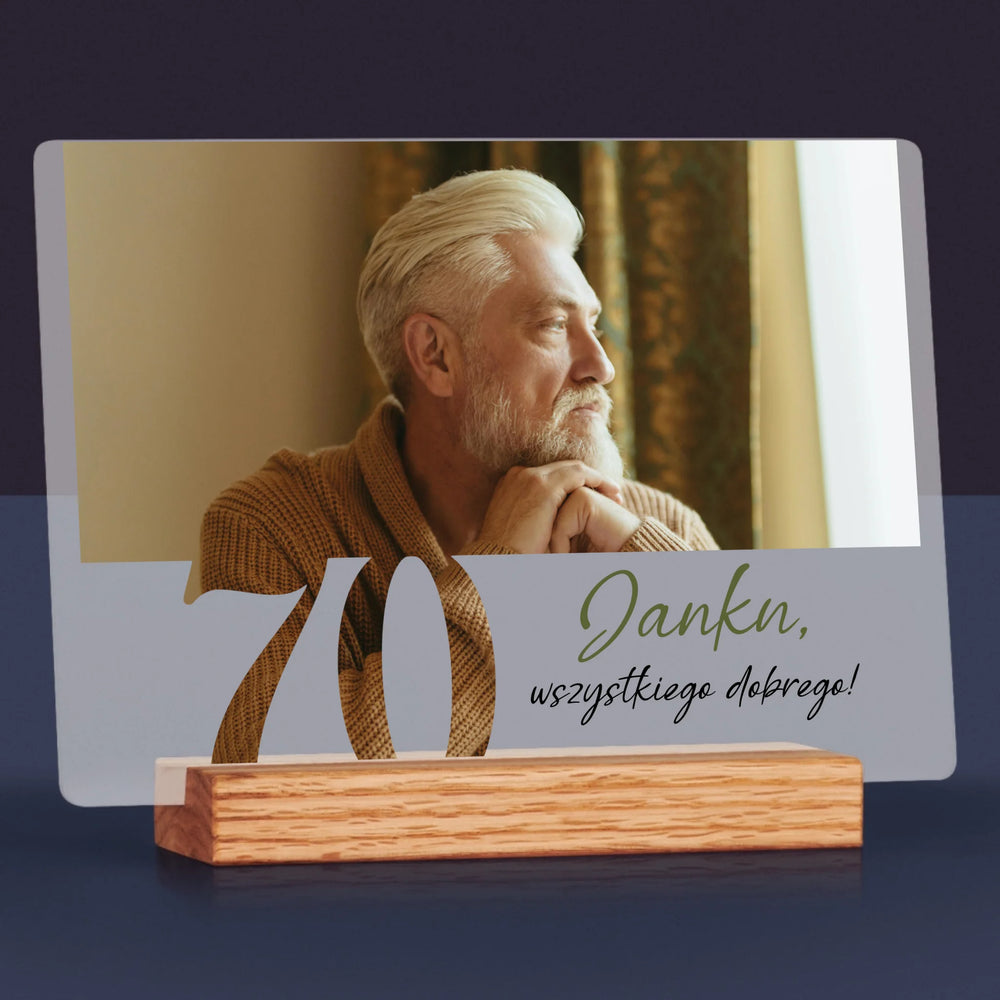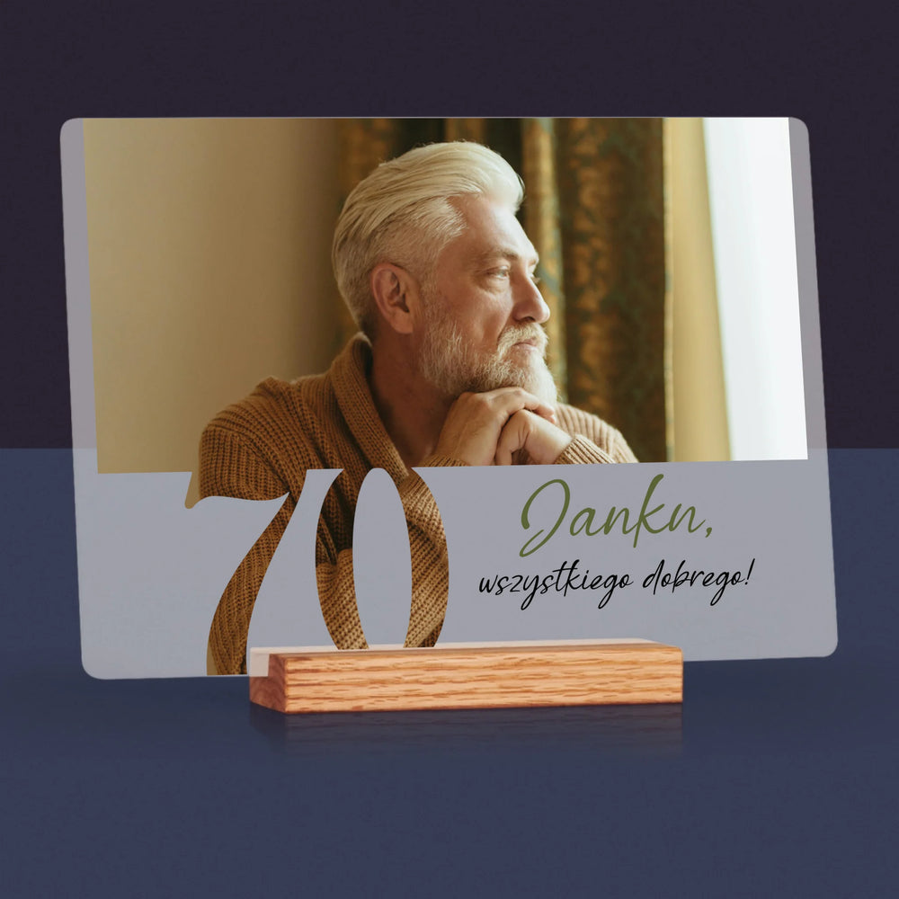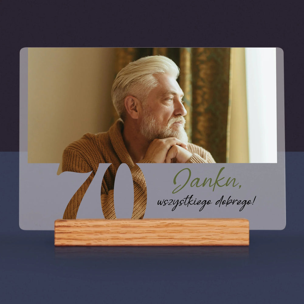Zdjęcie I Podpis: 70 Urodziny Wszystkiego Dobrego - Wydruk na szkle akrylowym - poziom