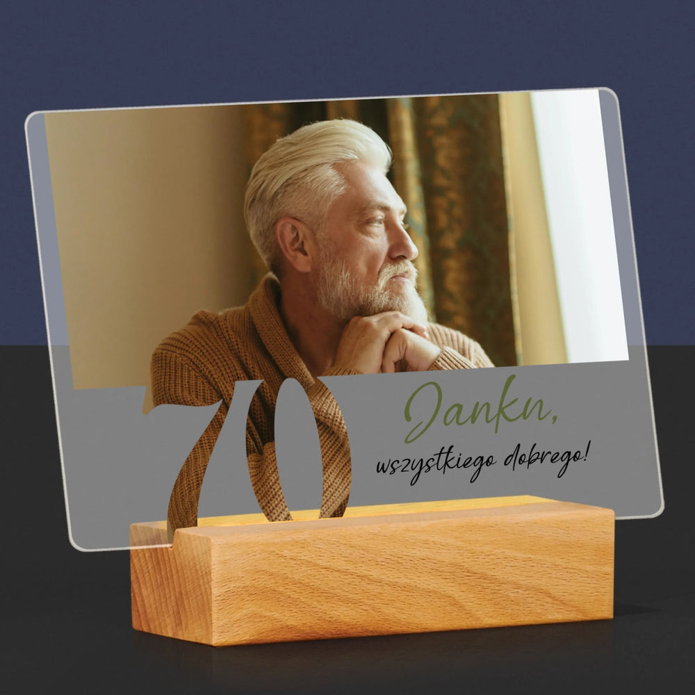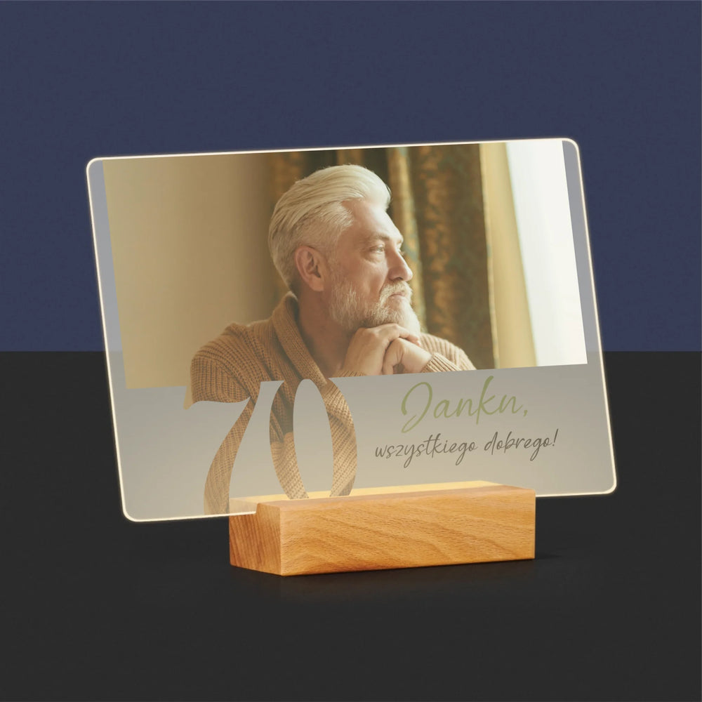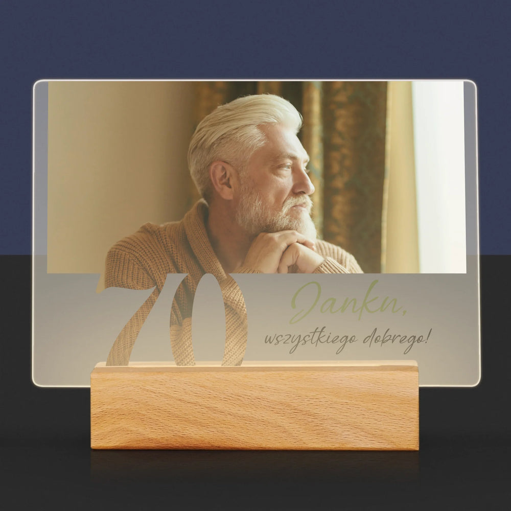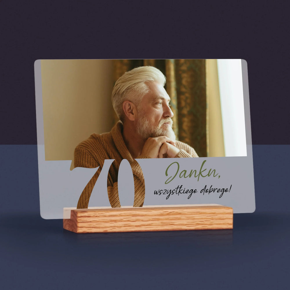Zdjęcie I Podpis: 70 Urodziny Wszystkiego Dobrego - Wydruk na szkle akrylowym - poziom