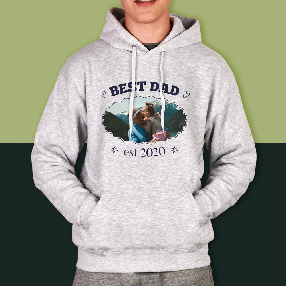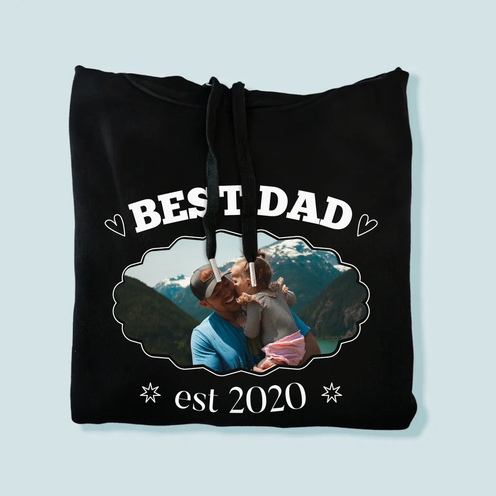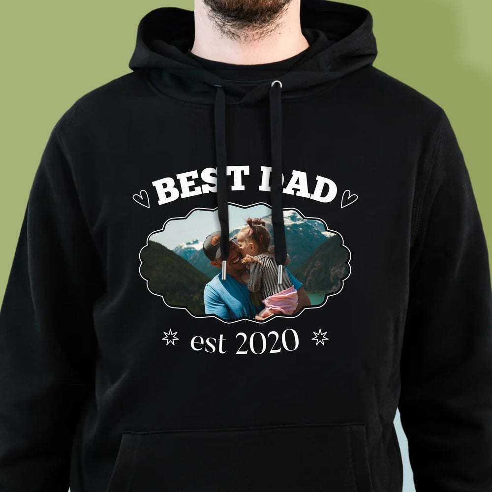 Zdjęcie I Podpis: Best Dad Established - Bluza męska z kapturem