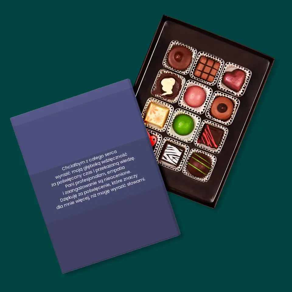 Pyszne praliny z belgijskiej czekolady w eleganckim pudełku z wybraną przez Ciebie personalizacją.