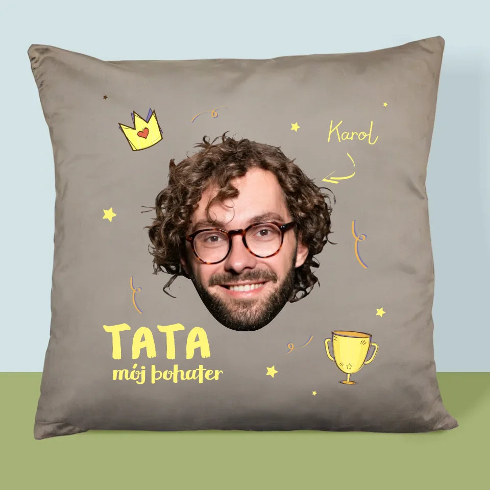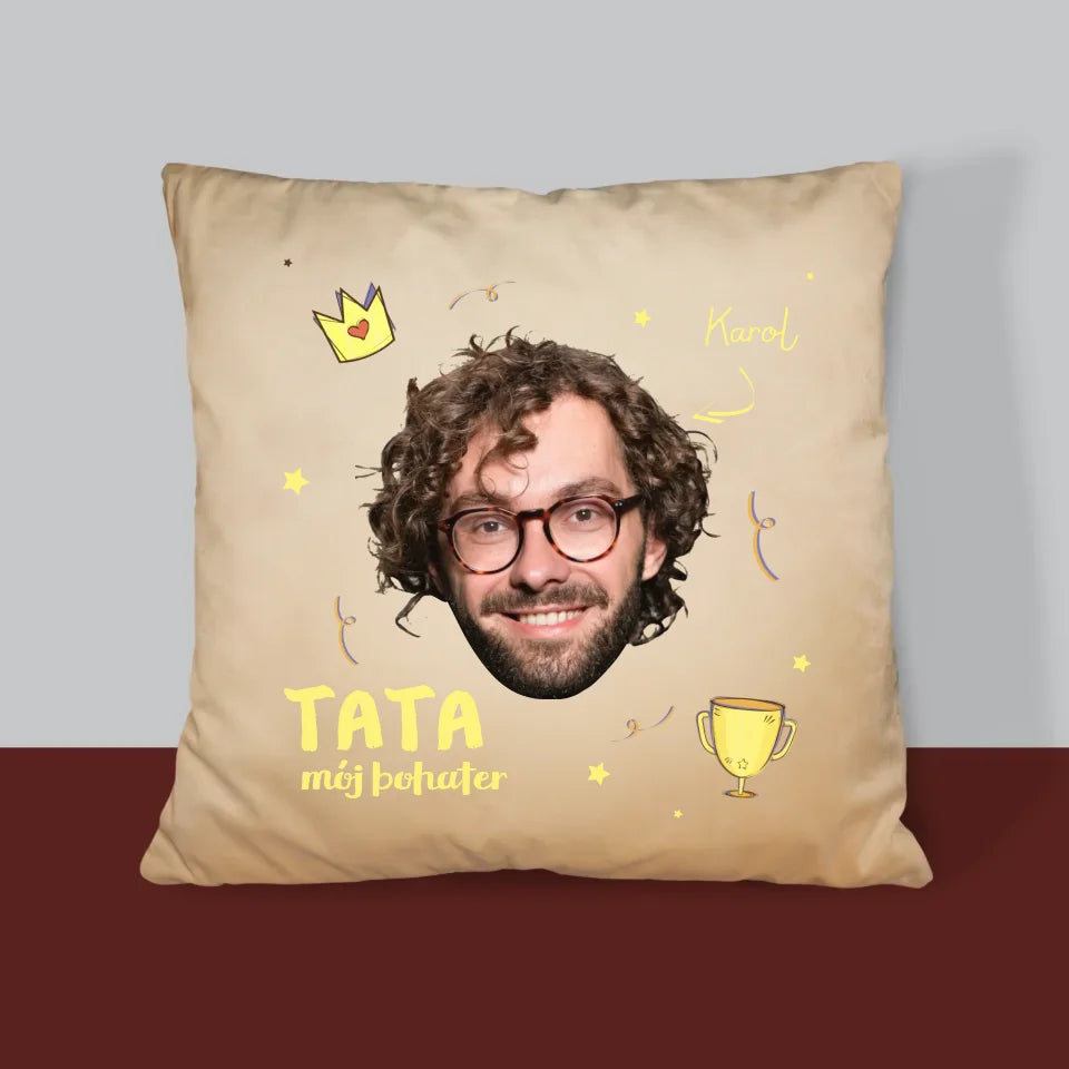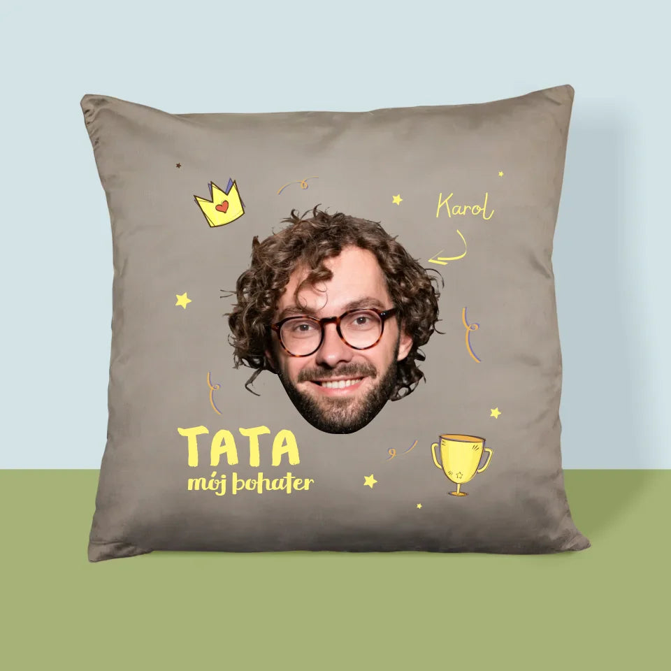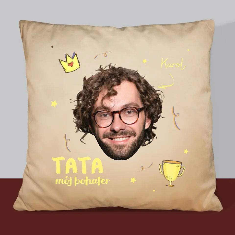 Zdjęcie i Podpis: Bohater Tata - Poduszka z Nadrukiem