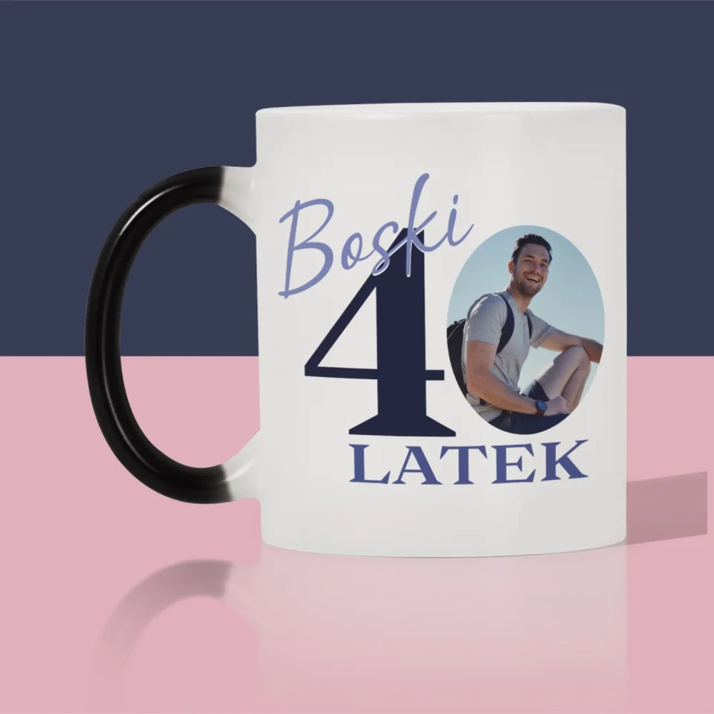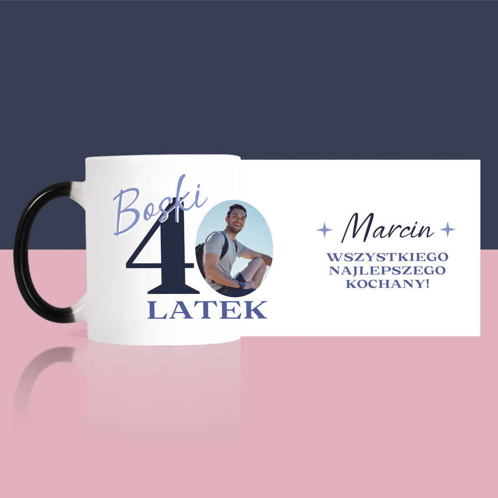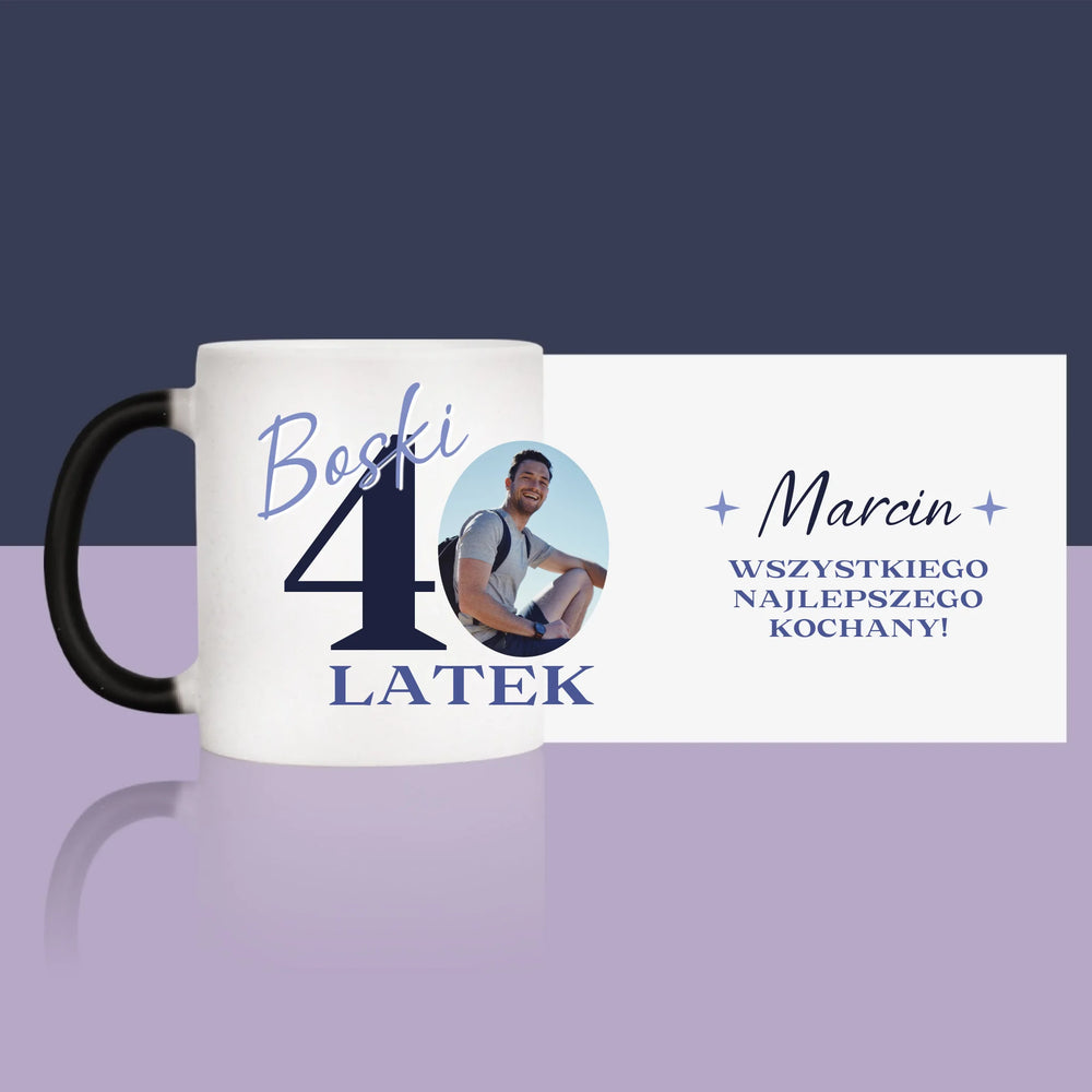 Zdjęcie I Podpis: Boski 40-Latek - Magiczny kubek z brokatem