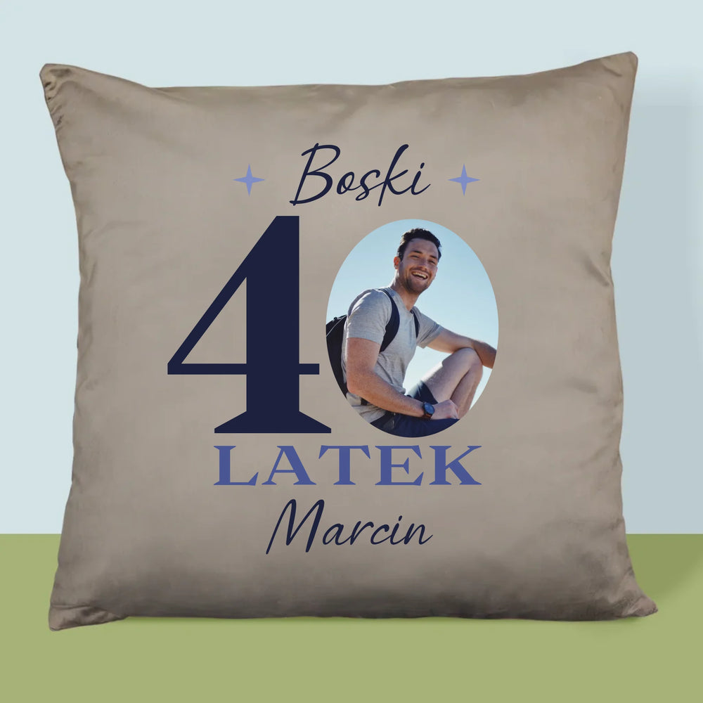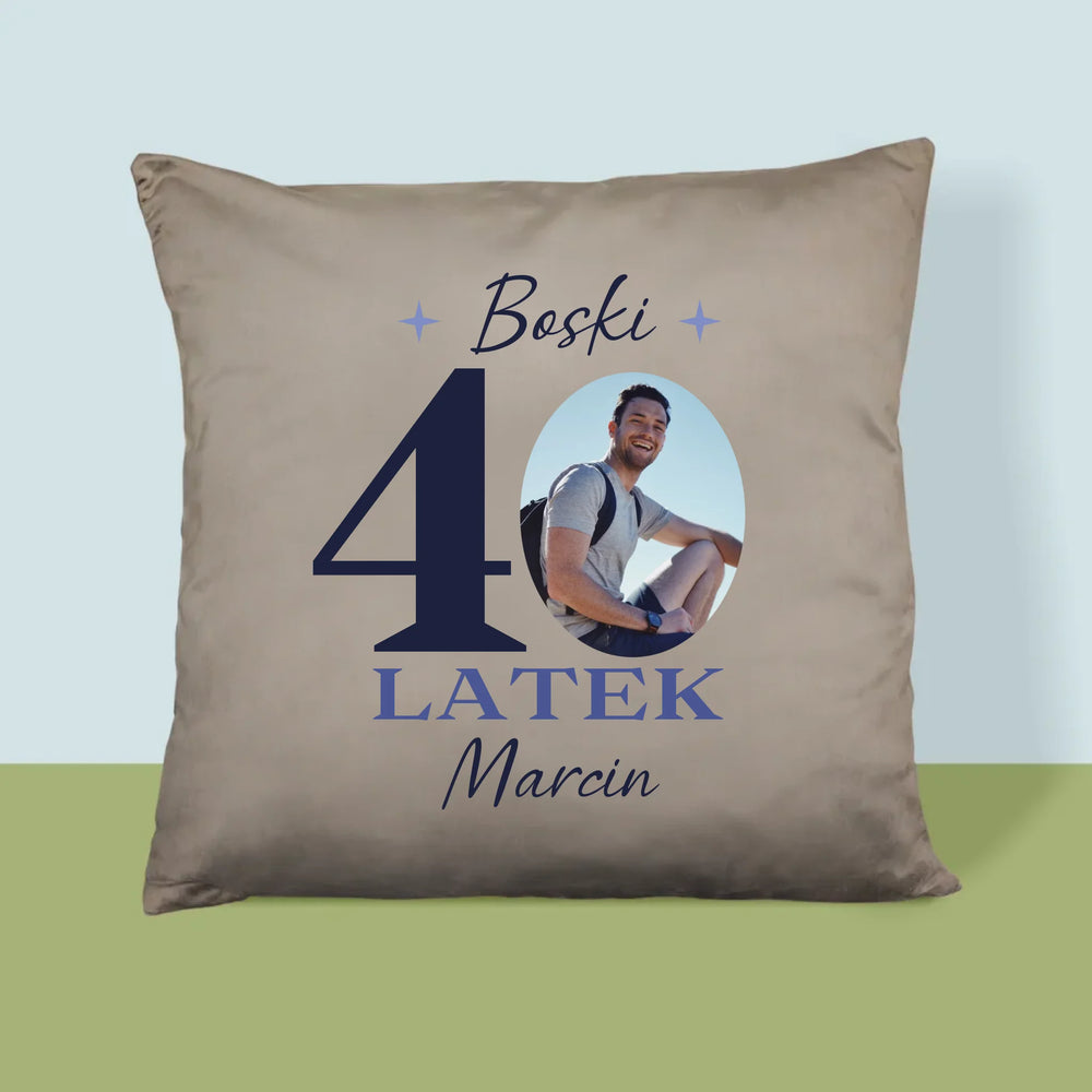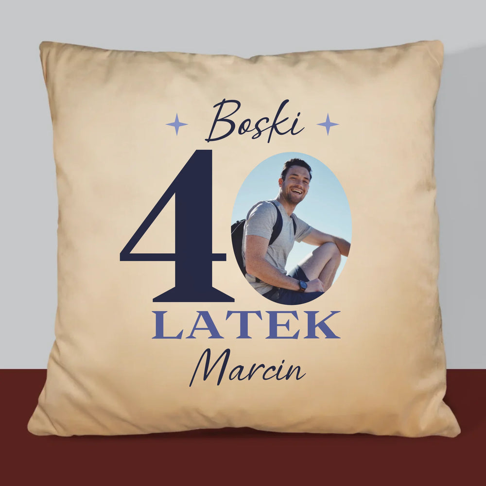 Zdjęcie I Podpis: Boski 40-Latek - Poduszka z Nadrukiem