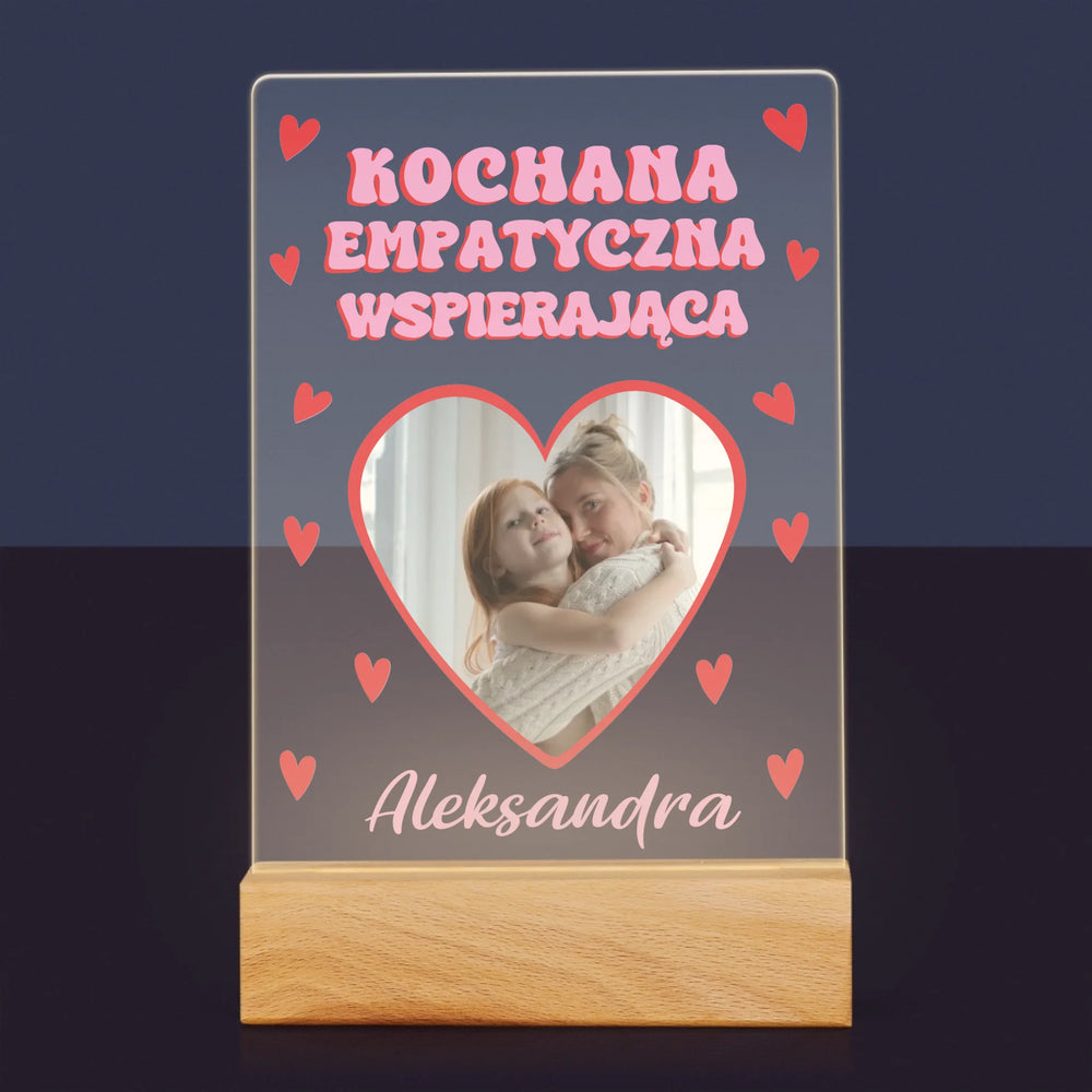 Zdjęcie i Podpis: Cechy Mamusi - Wydruk na szkle akrylowym LED