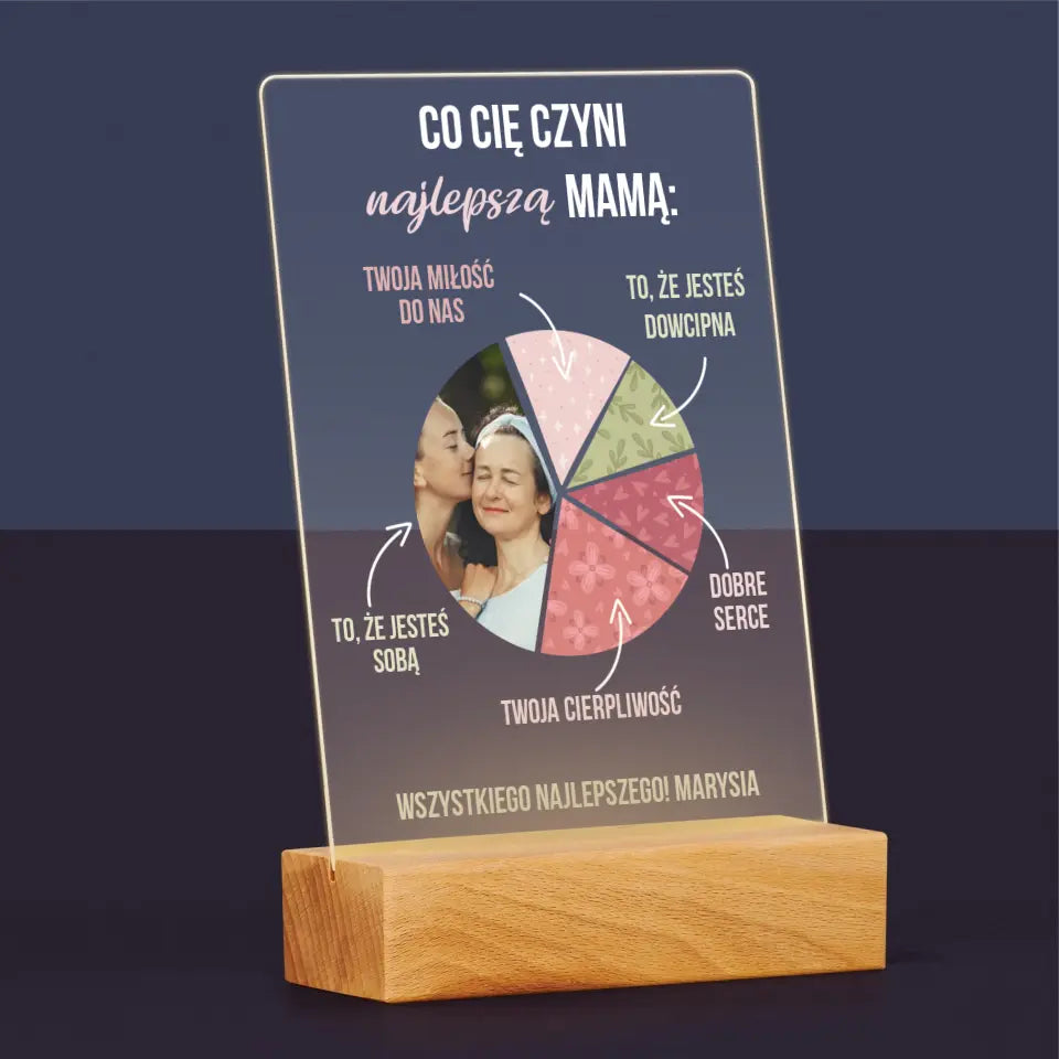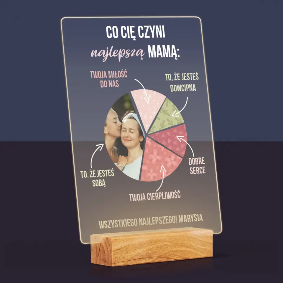 Zdjęcie i Podpis: Cechy Najlepszej Mamy - Wydruk na szkle akrylowym