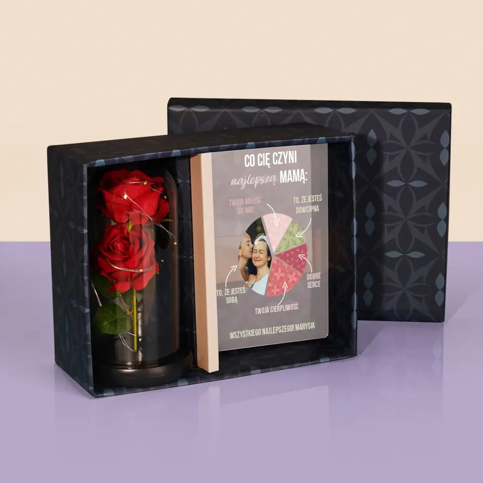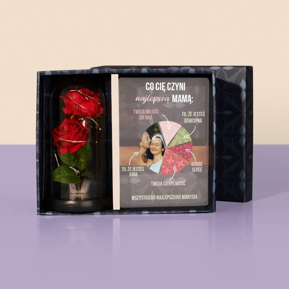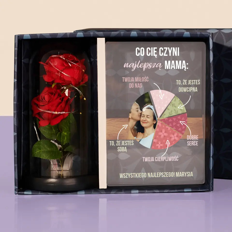 Zdjęcie i Podpis: Cechy Najlepszej Mamy - Zestaw prezentowy z wieczną różą