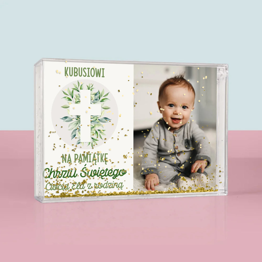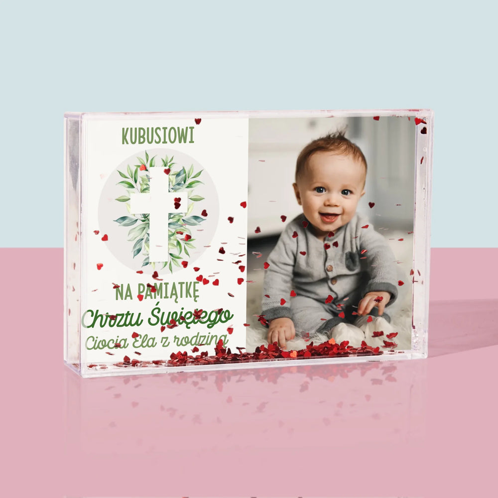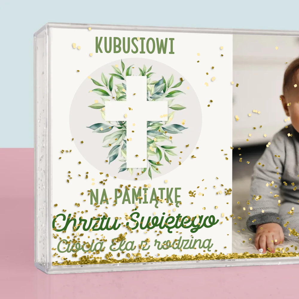 Zdjęcie i Podpis: Chrzest Święty Listki - Personalizowana Ramka Wodna