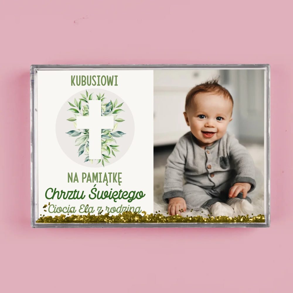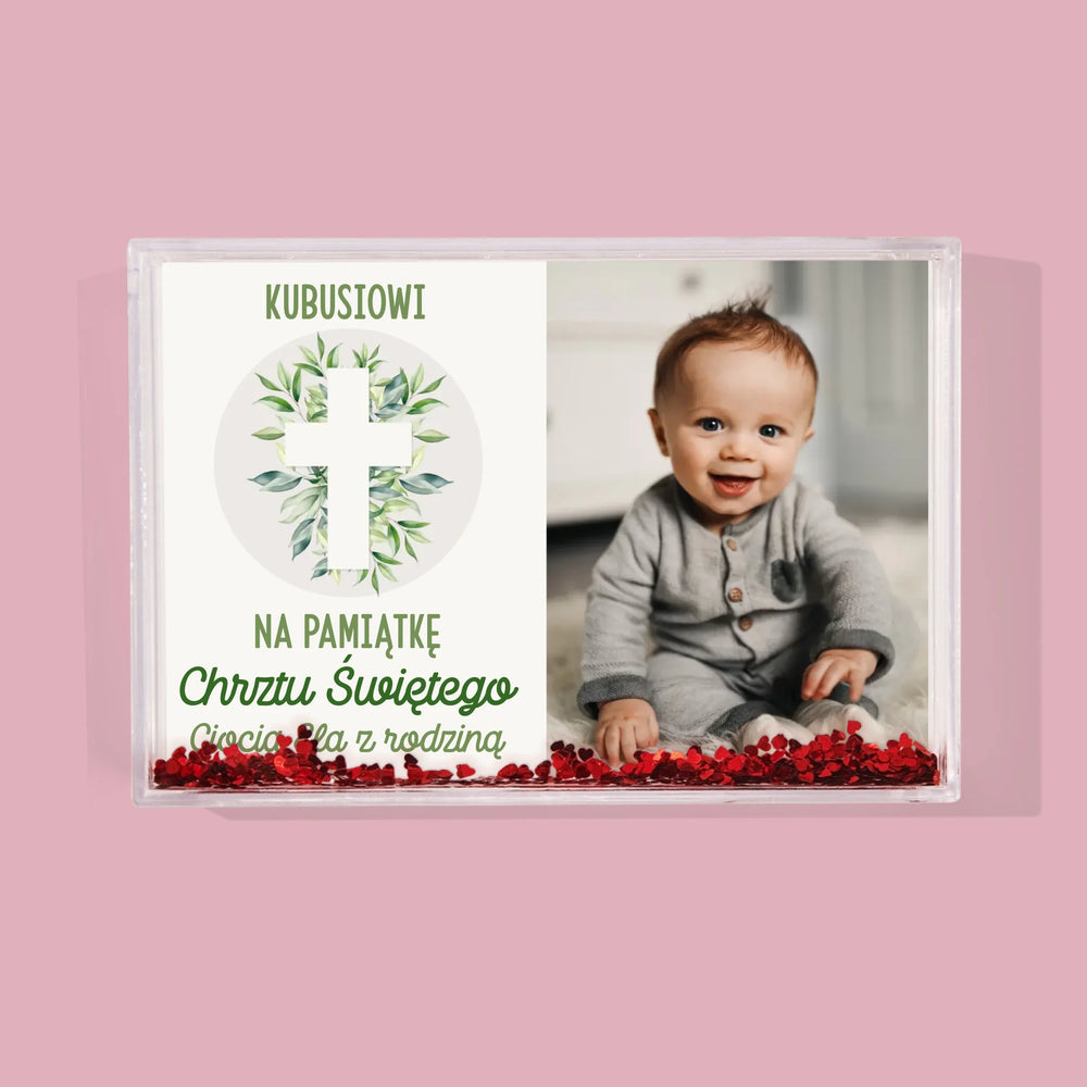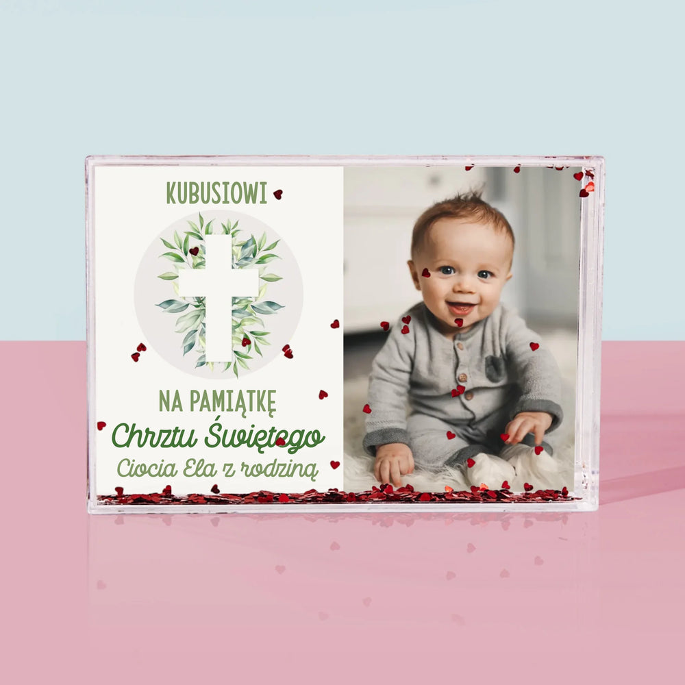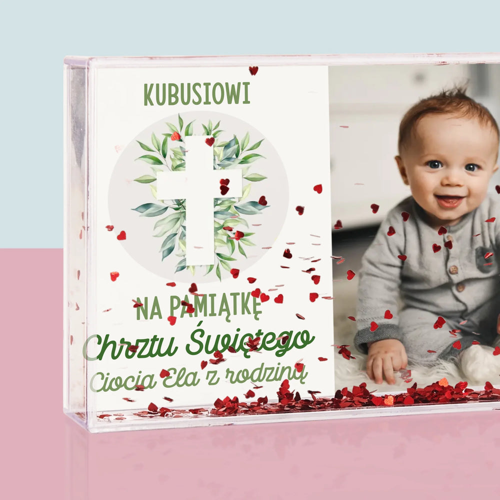 Zdjęcie i Podpis: Chrzest Święty Listki - Personalizowana Ramka Wodna