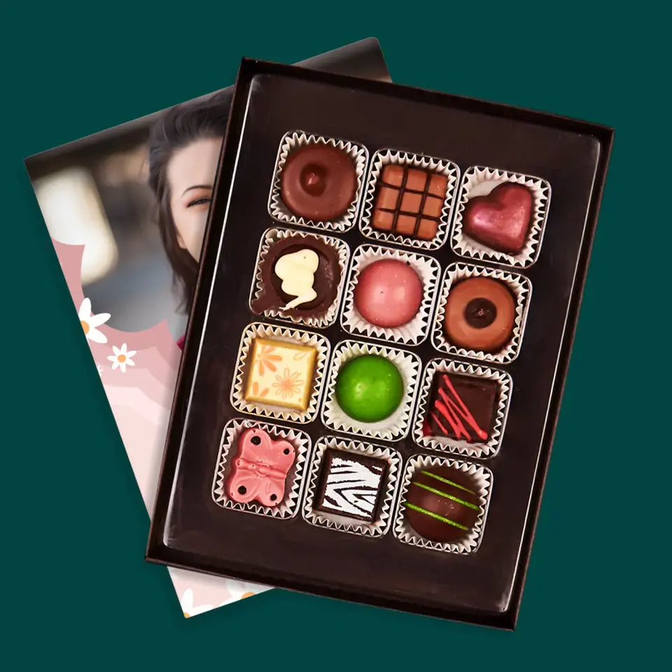 Pyszne praliny z belgijskiej czekolady w eleganckim pudełku z wybraną przez Ciebie personalizacją.