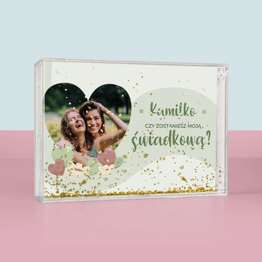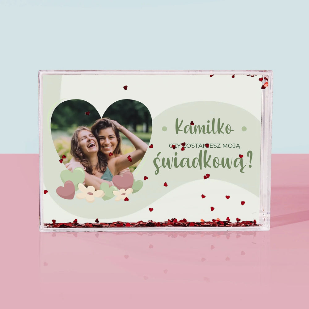 Zdjęcie i Podpis: Czy Zostaniesz Moją Świadkową Kwiaty - Personalizowana Ramka Wodna