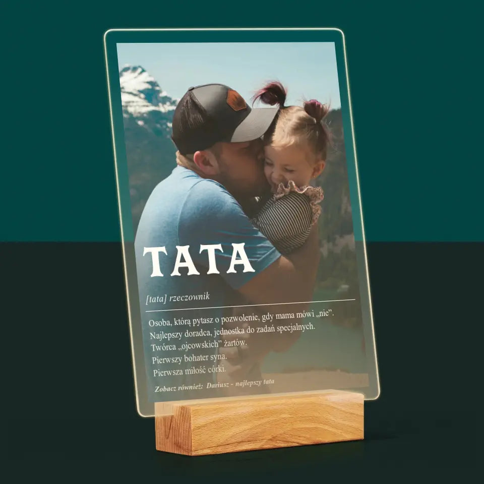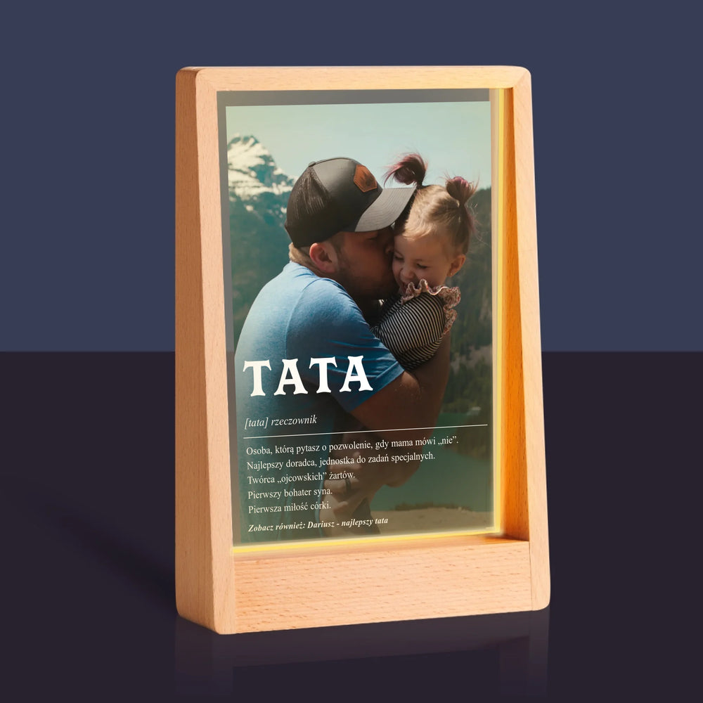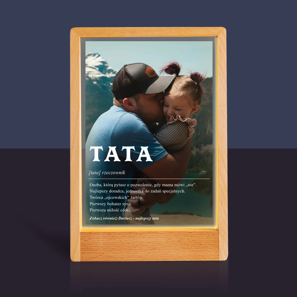 Zdjęcie i Podpis: Definicja Tata - Wydruk na szkle akrylowym w ramce LED