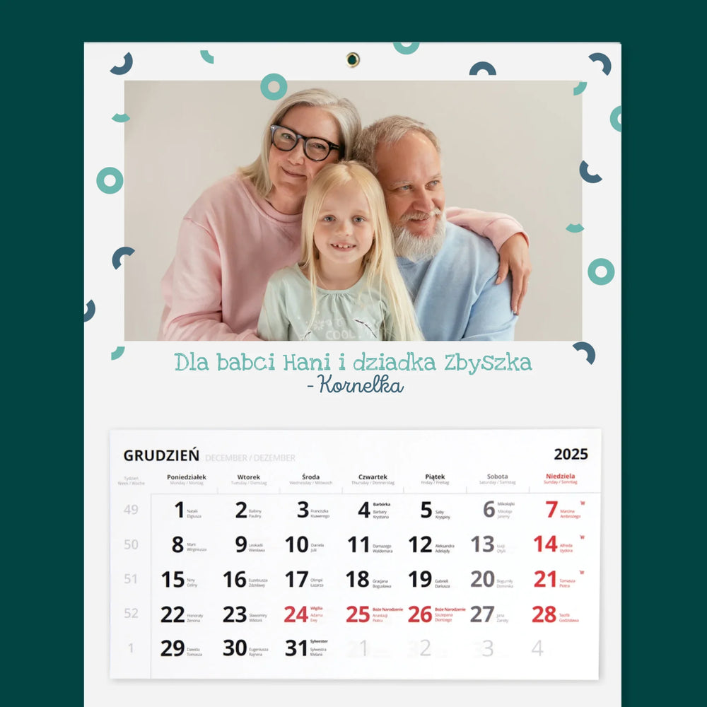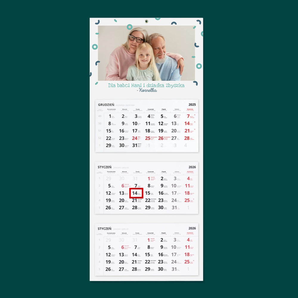 Zdjęcie i Podpis: Dla Babci i Dziadka - Kalendarz trójdzielny