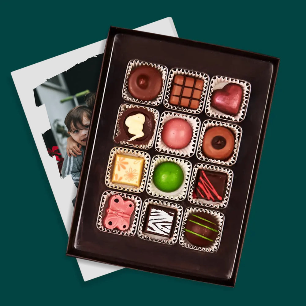 Pyszne praliny z belgijskiej czekolady w eleganckim pudełku z wybraną przez Ciebie personalizacją.