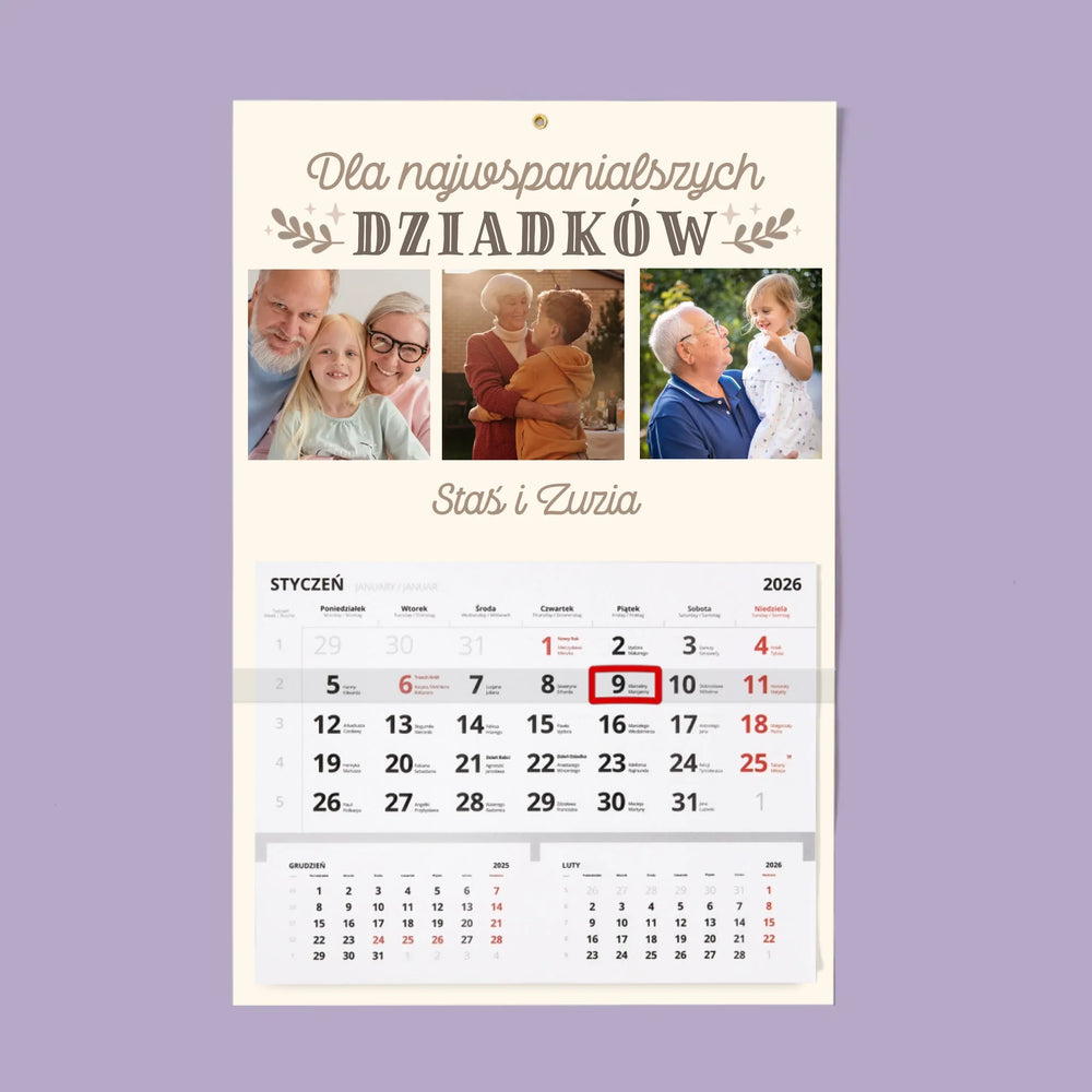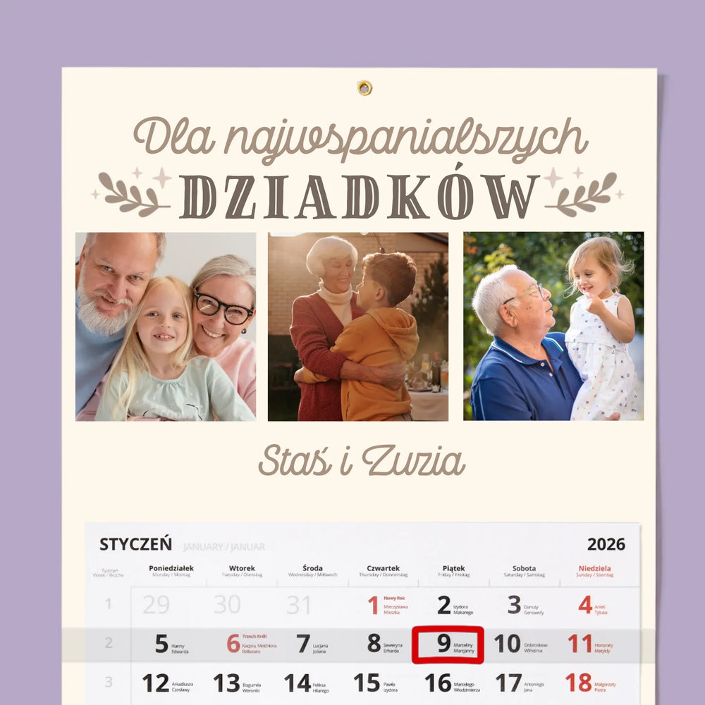 Zdjęcie i Podpis: Dla Najwspanialszych Dziadków - Kalendarz jednodzielny