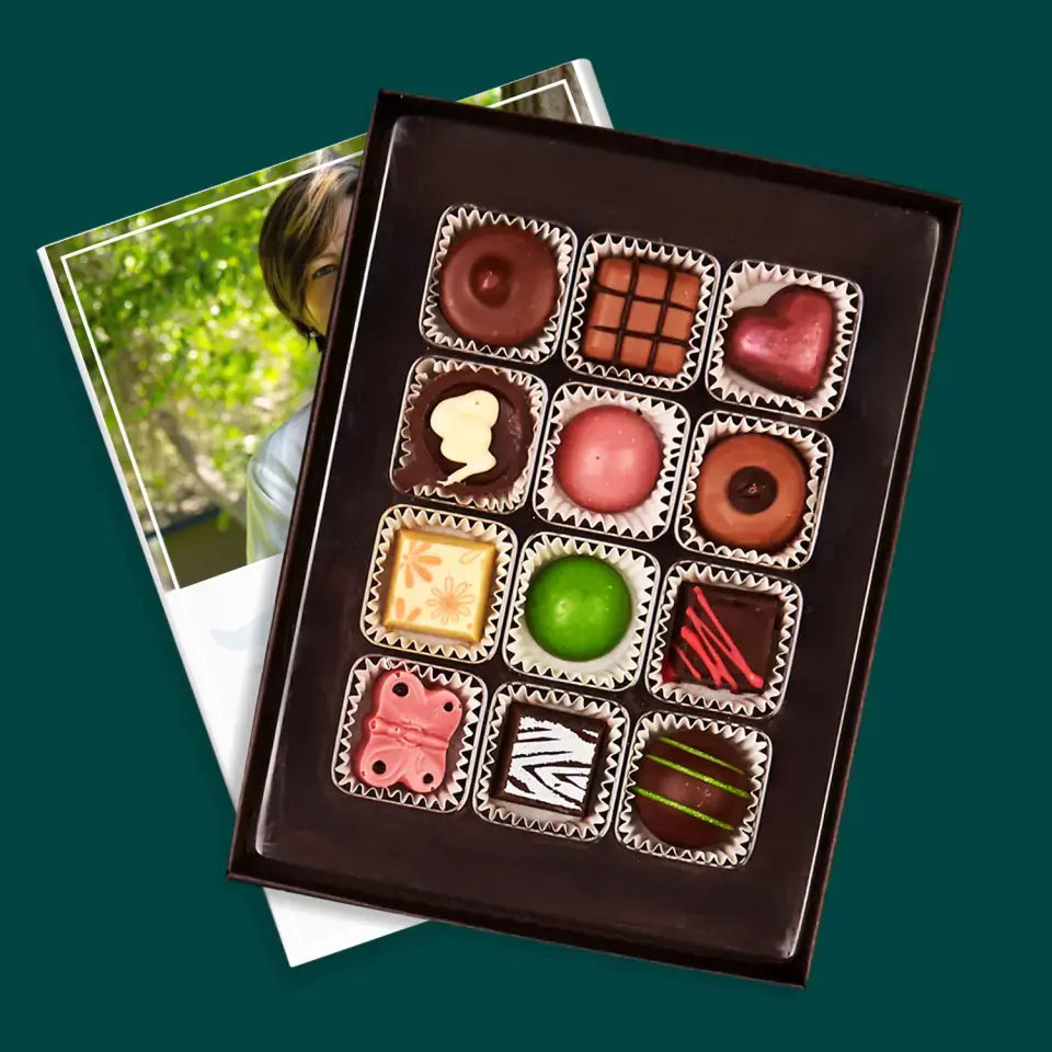 Pyszne praliny z belgijskiej czekolady w eleganckim pudełku z wybraną przez Ciebie personalizacją.