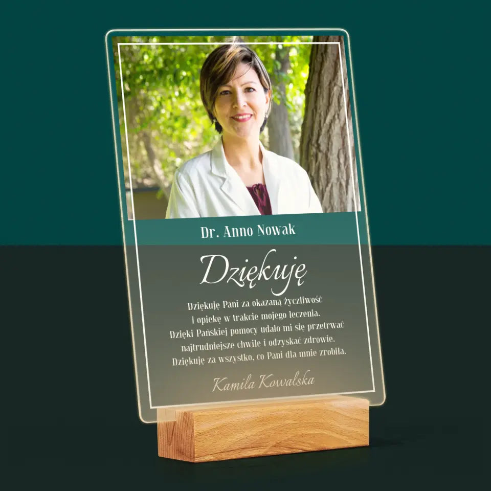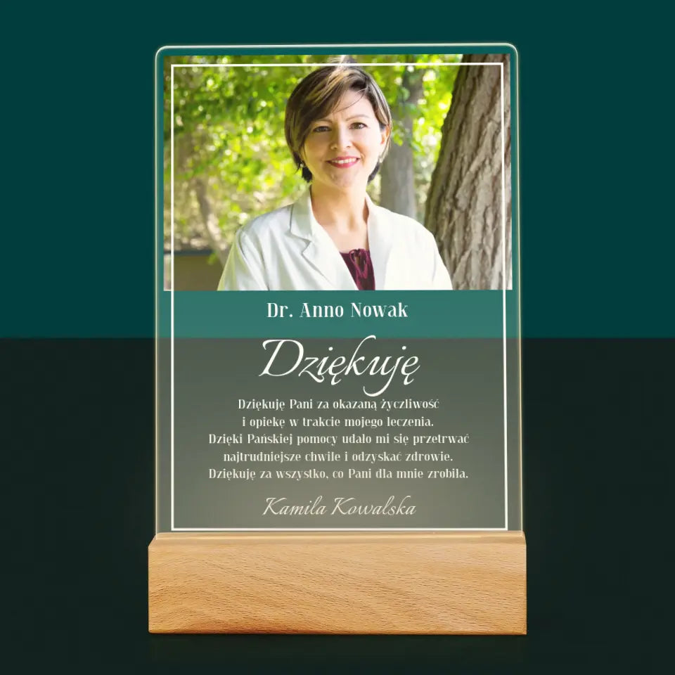 Zdjęcie i Podpis: Doktorze Dziękuję - Wydruk na szkle akrylowym