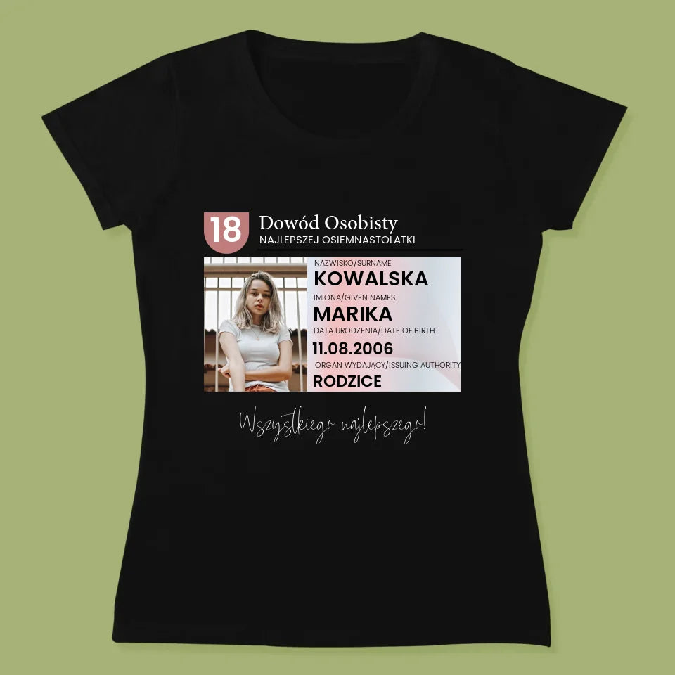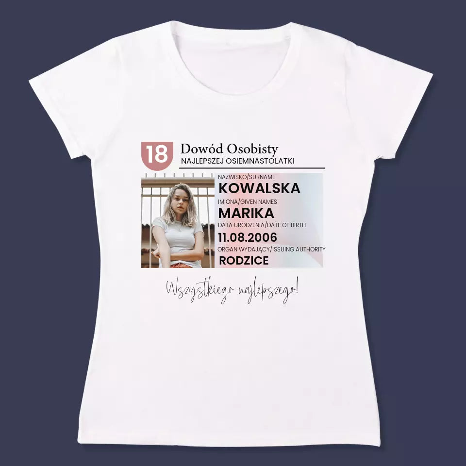 Zdjęcie i Podpis: Dowód Osobisty - Personalizowana Koszulka Damska