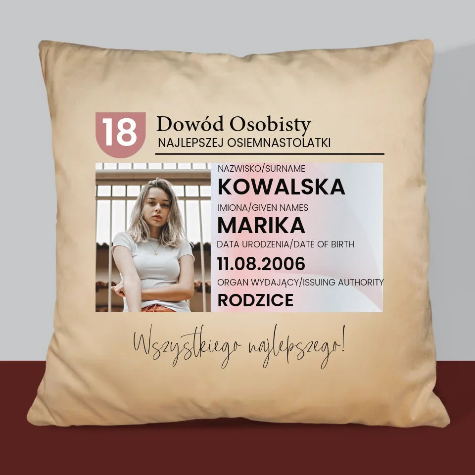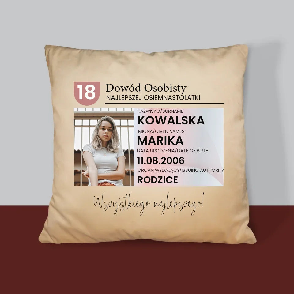 Zdjęcie i Podpis: Dowód Osobisty - Poduszka z Nadrukiem
