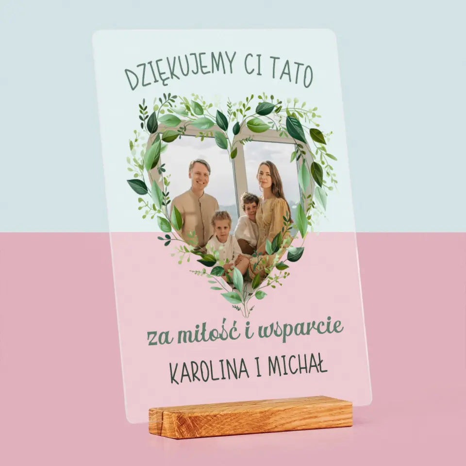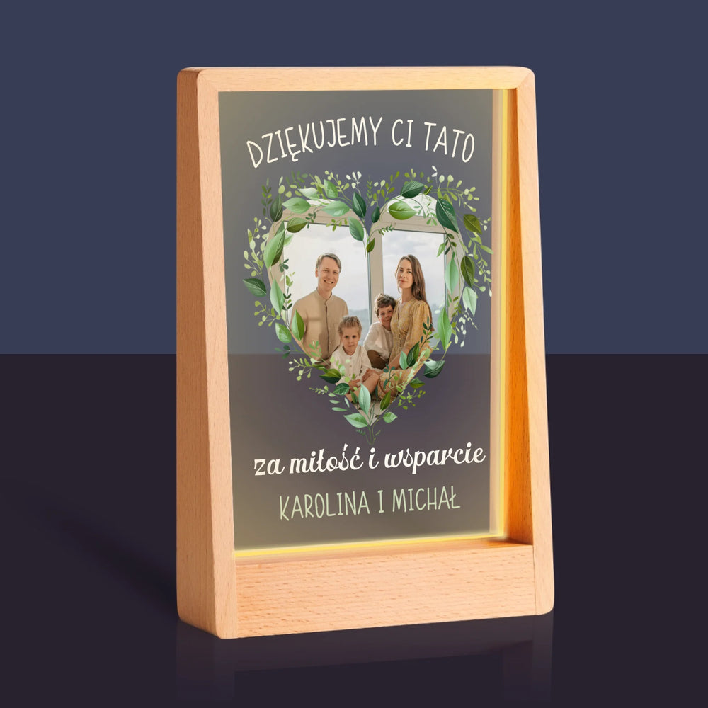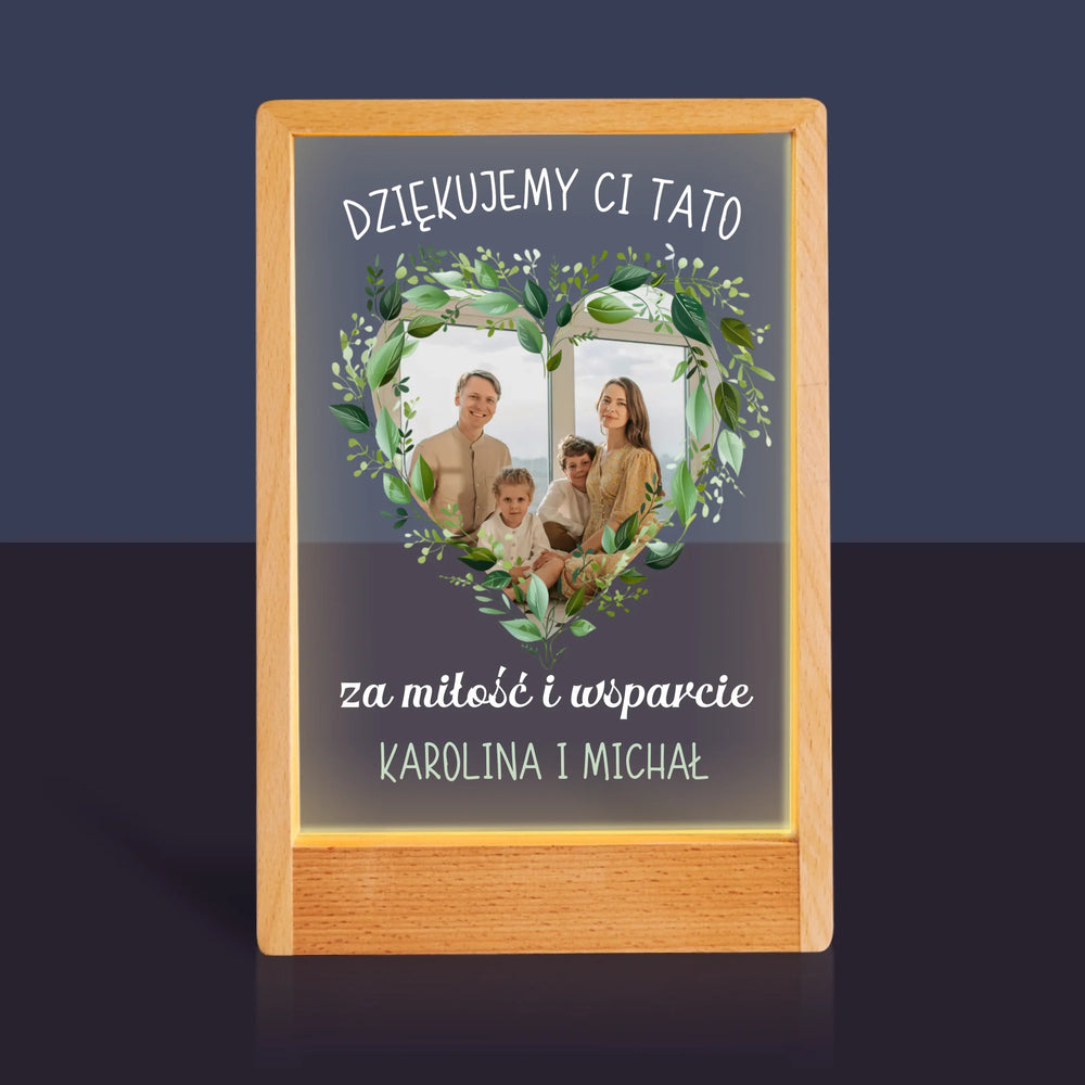 Zdjęcie i Podpis: Dziękujemy Tato - Wydruk na szkle akrylowym w ramce LED