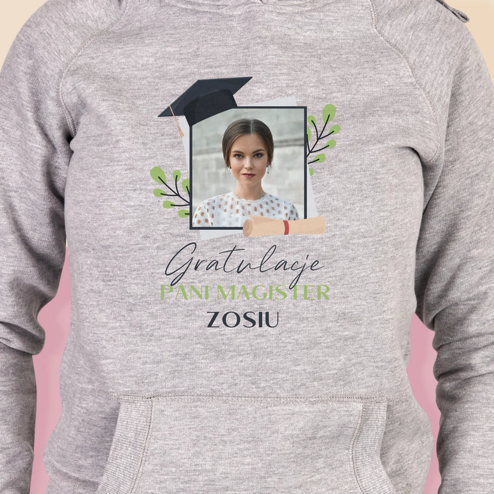 Zdjęcie i Podpis: Gratulacje Magister - Bluza Damska z Kapturem