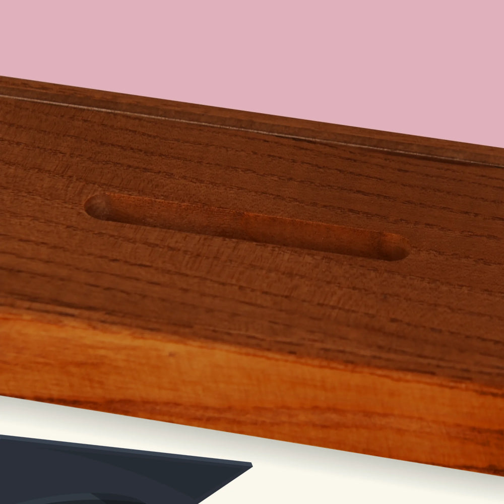 Wykonana z bejcowanego i lakierowanego drewna jesionowego.