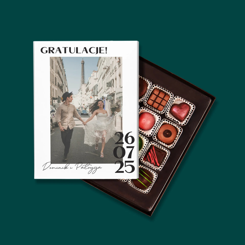 Pyszne praliny z belgijskiej czekolady w eleganckim pudełku z wybraną przez Ciebie personalizacją.