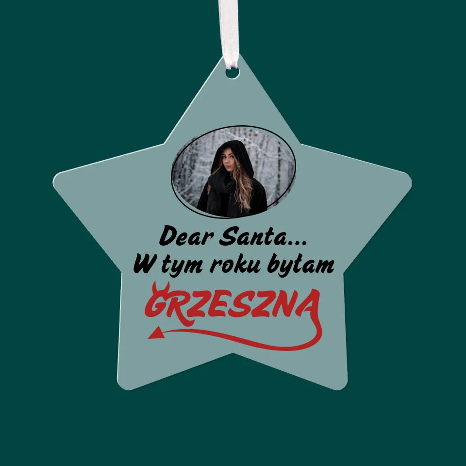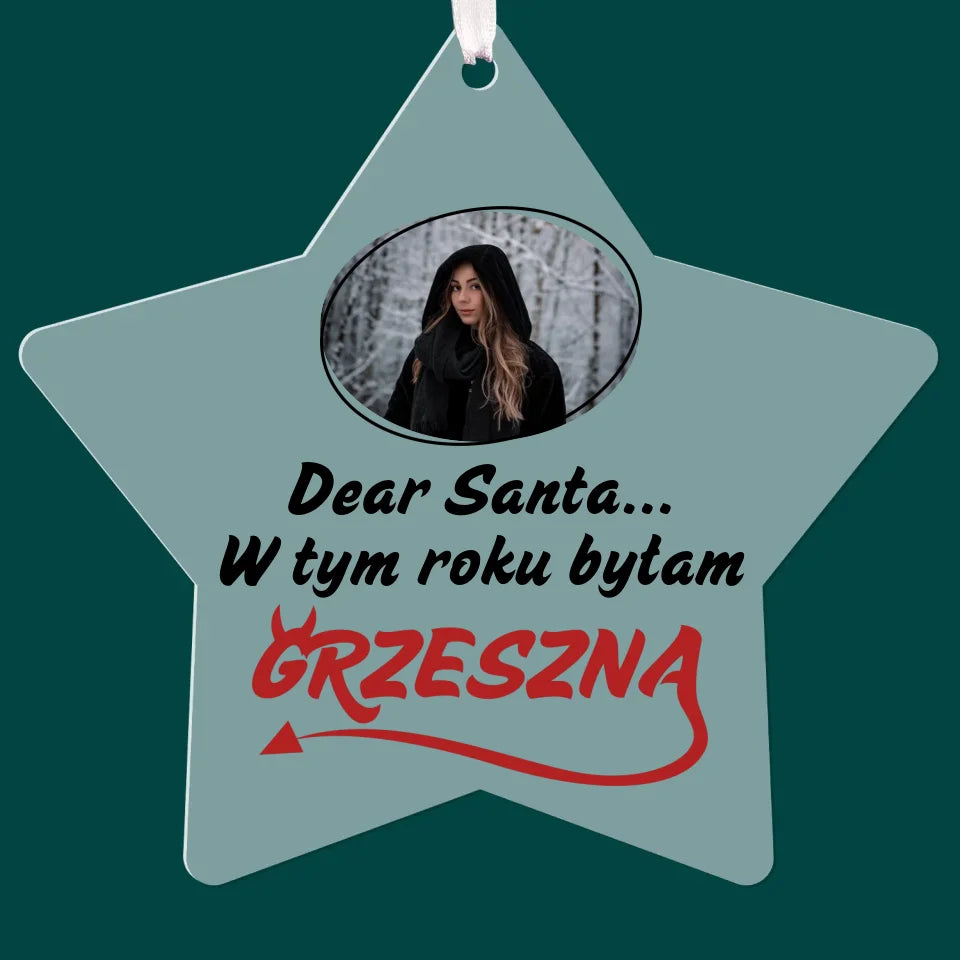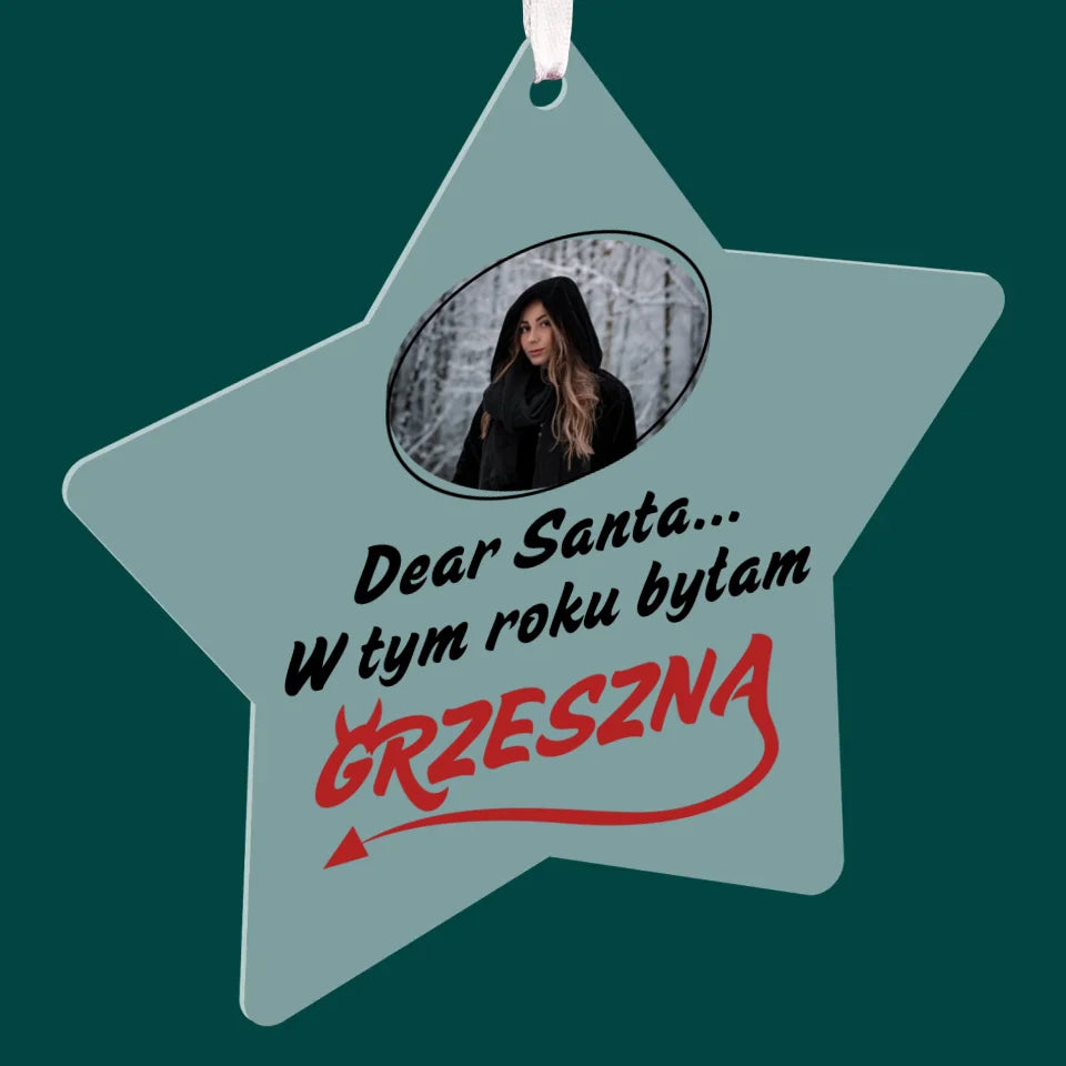 Zdjęcie i Podpis: Grzeszna - Bombka akrylowa gwiazdka