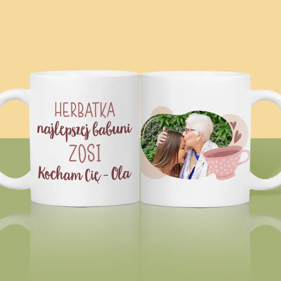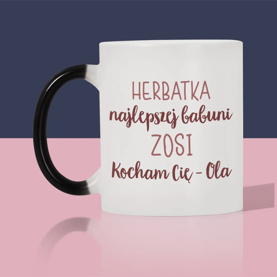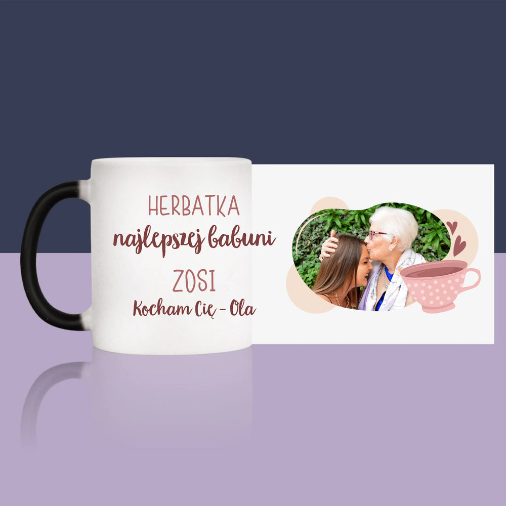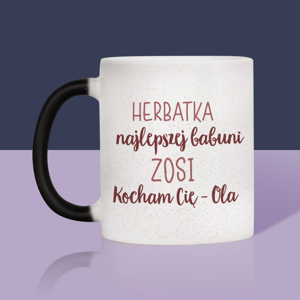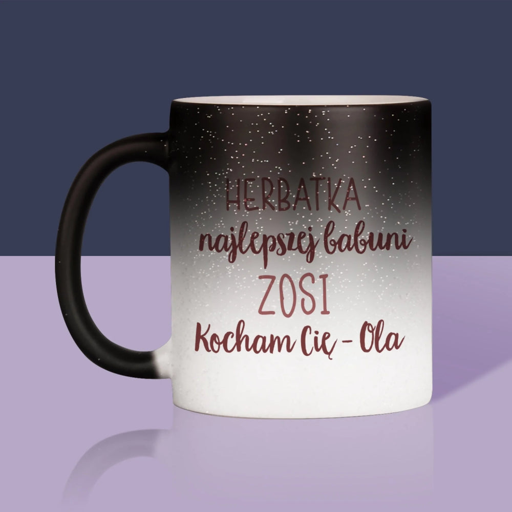Zdjęcie i Podpis: Herbatka Najlepszej Babuni - Magiczny kubek z brokatem