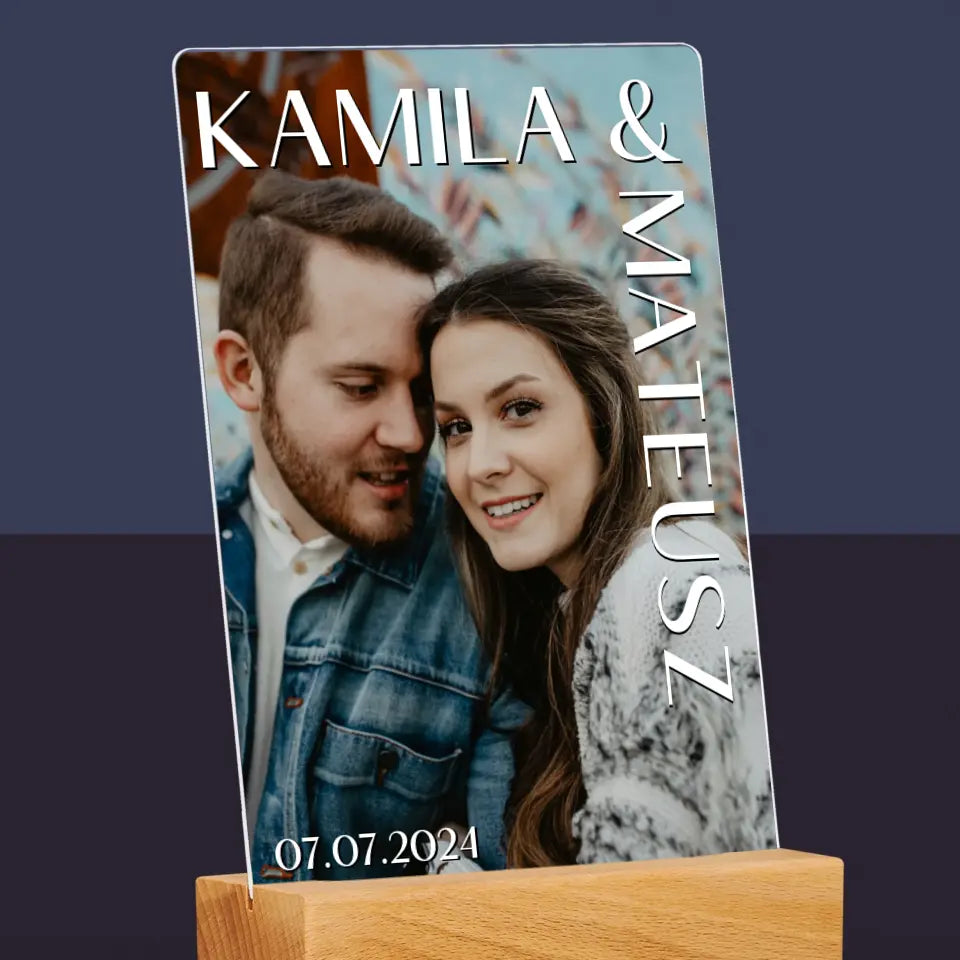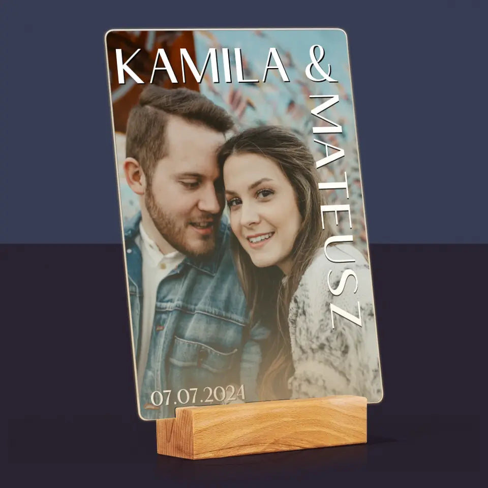 Zdjęcie i Podpis: Imiona Ślub - Wydruk na szkle akrylowym