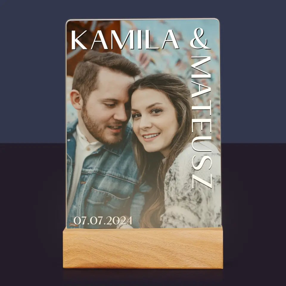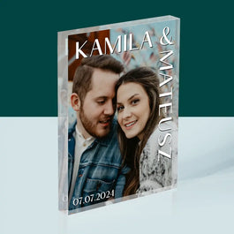 Zdjęcie i Podpis: Imiona Ślub - Wydruk na szkle akrylowym